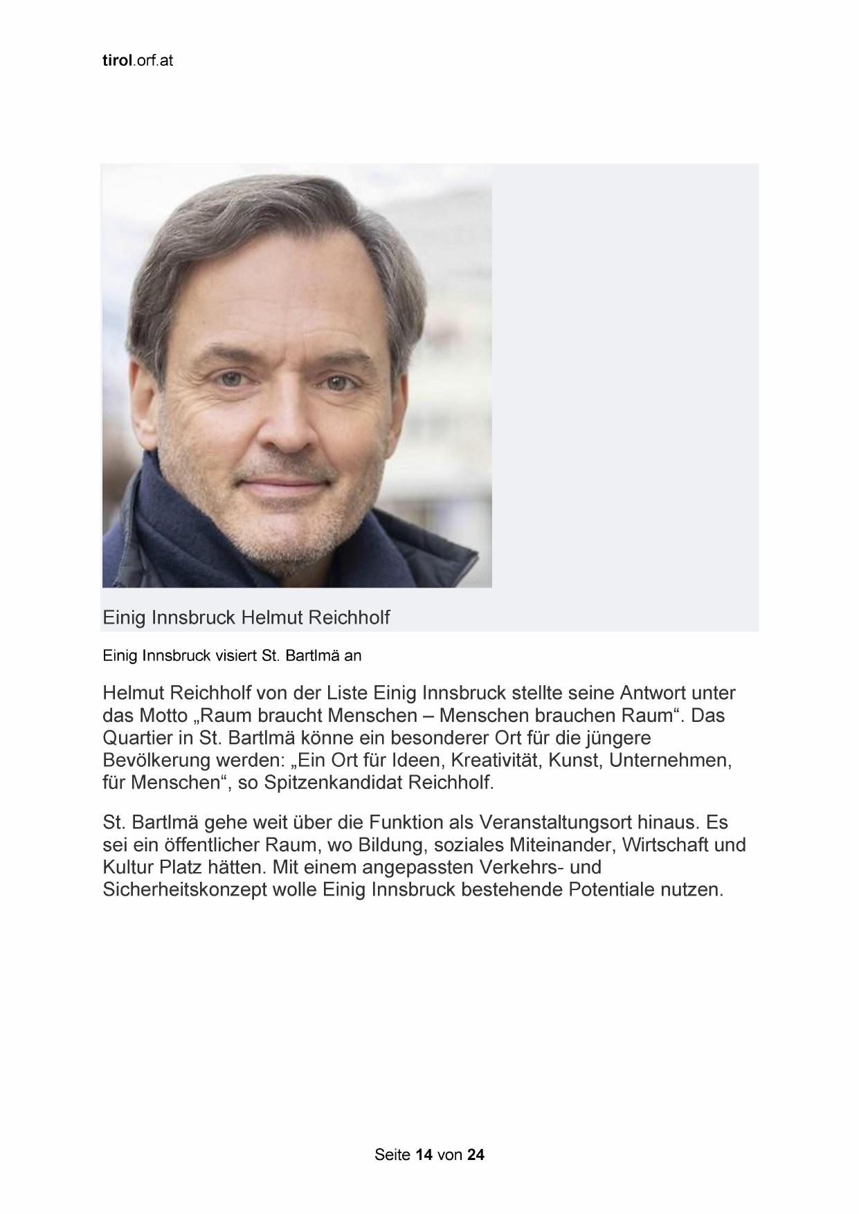 Helmut Reichholf von der Liste Einig Innsbruck stellte seine Antwort unter