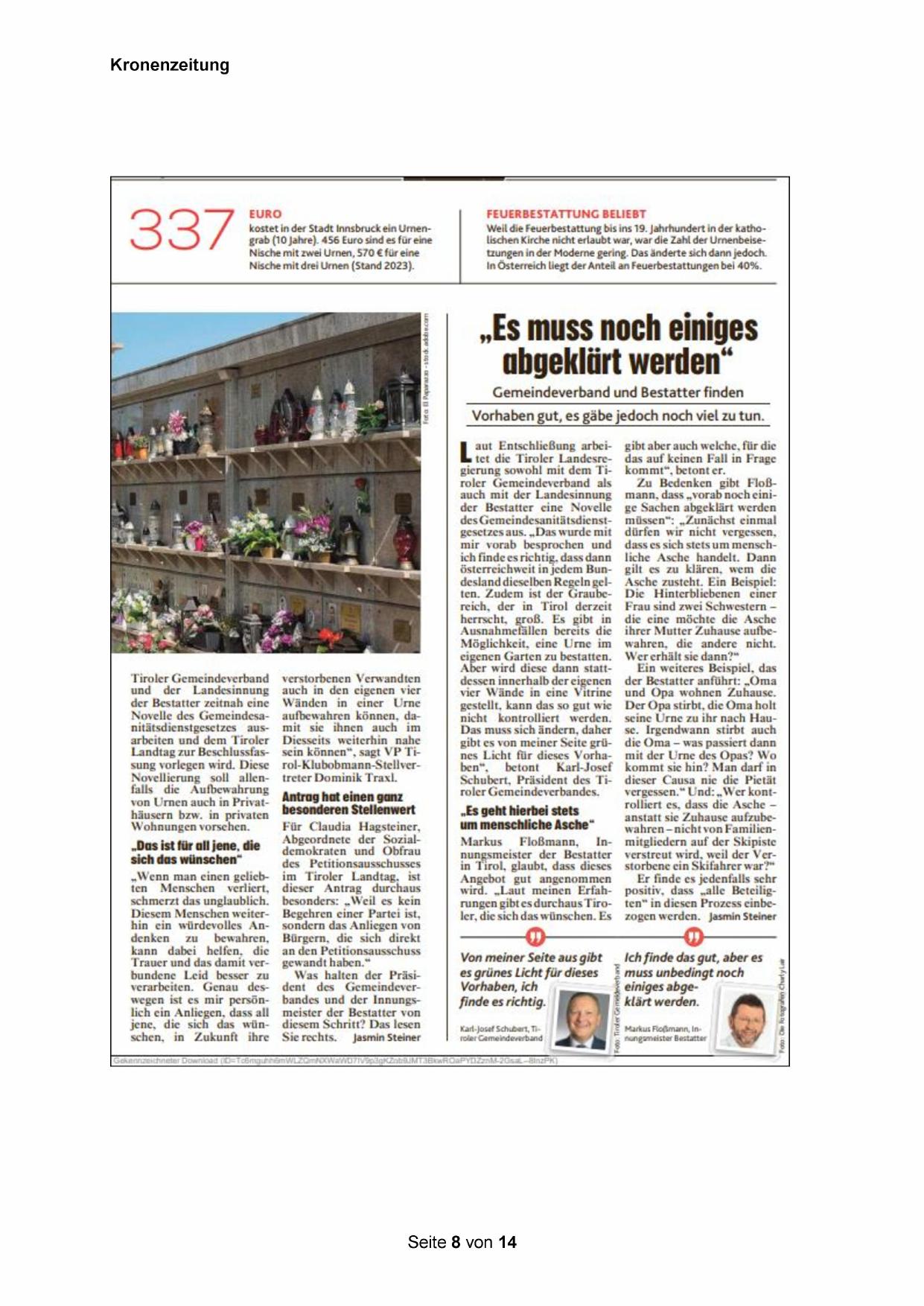 Was halten der Präsident des Gemeindeverbandes und der Innungsmeister der Bestatter von