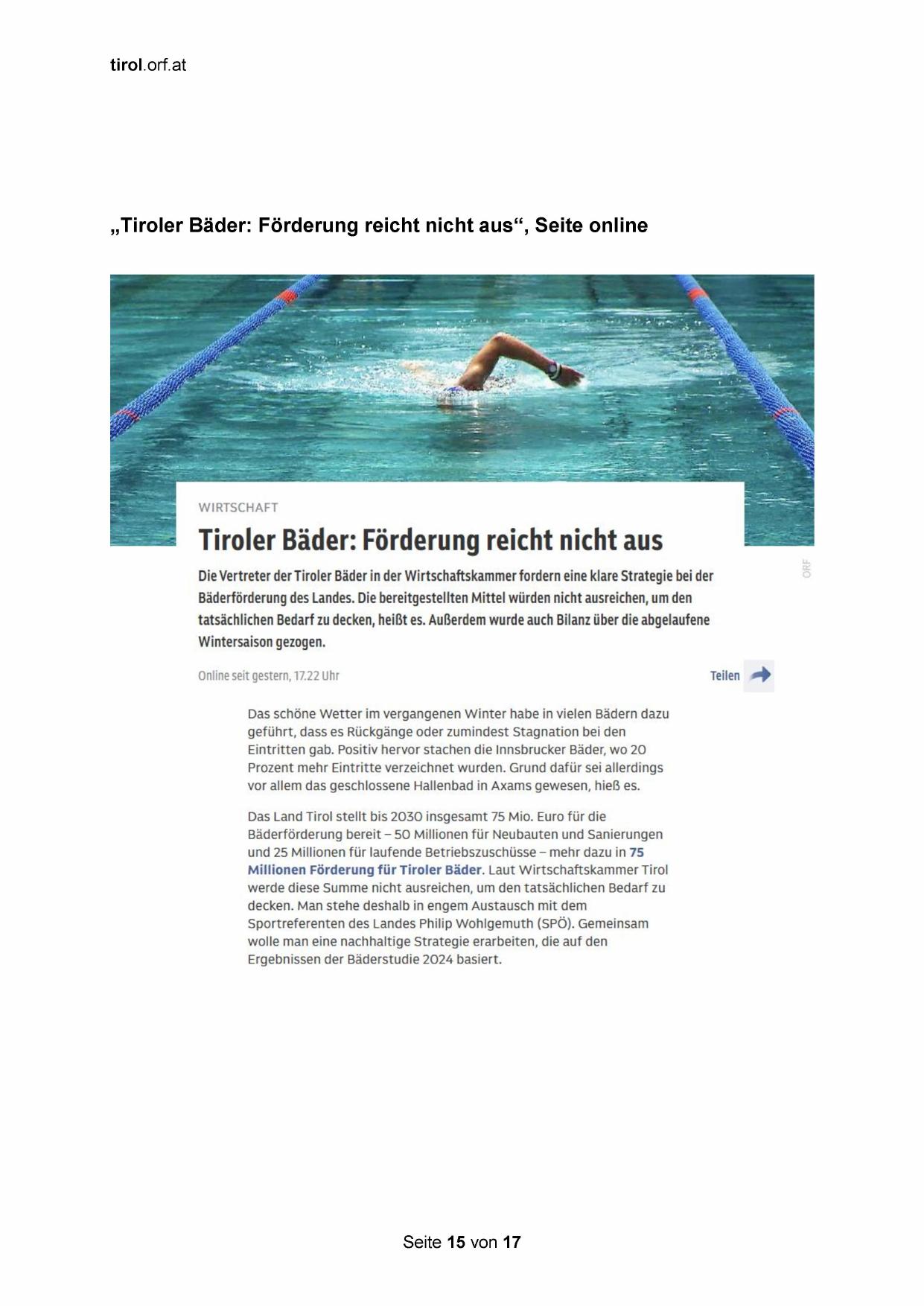 „Tiroler Bäder: Förderung reicht nicht aus“, Seite online