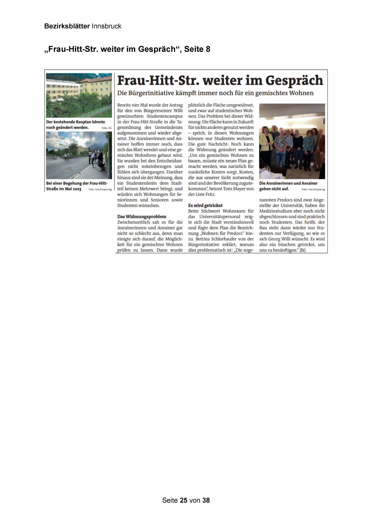 „Frau-Hitt-Str. weiter im Gespräch“, Seite 8