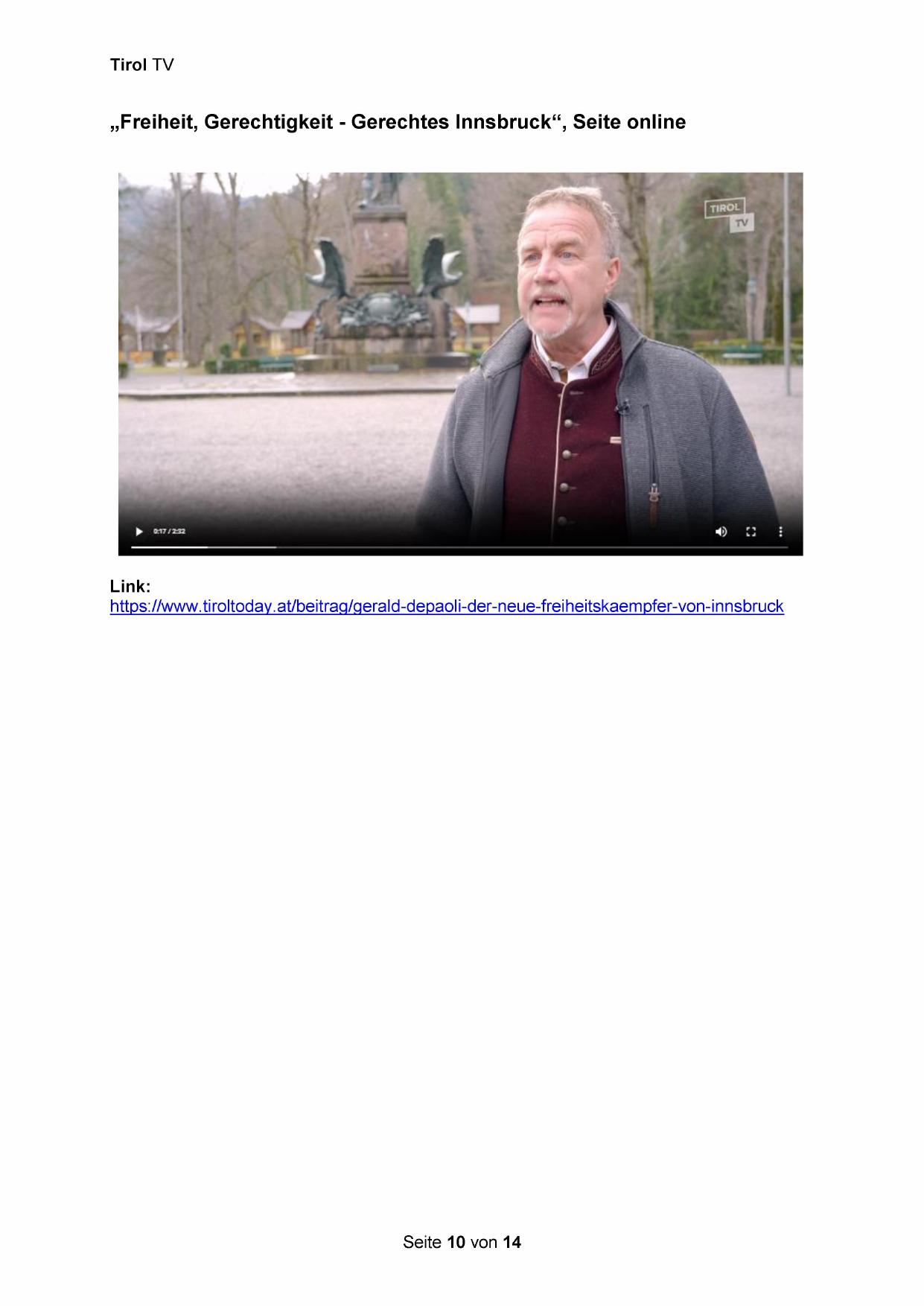 „Freiheit, Gerechtigkeit - Gerechtes Innsbruck“, Seite online