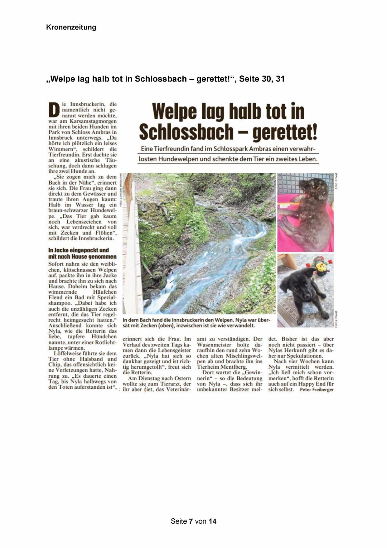 „Welpe lag halb tot in Schlossbach — gerettet!“, Seite 30, 31