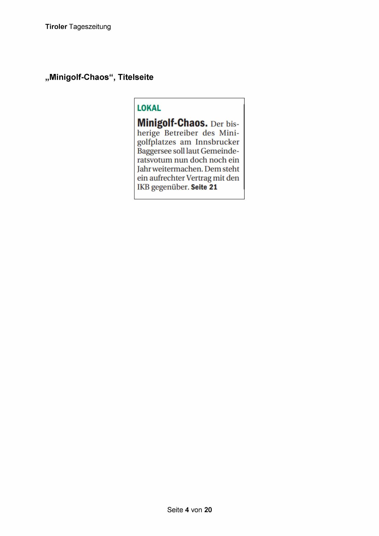 Minigolf-Chaos. Der bisherige Betreiber des Minigolfplatzes am Innsbrucker