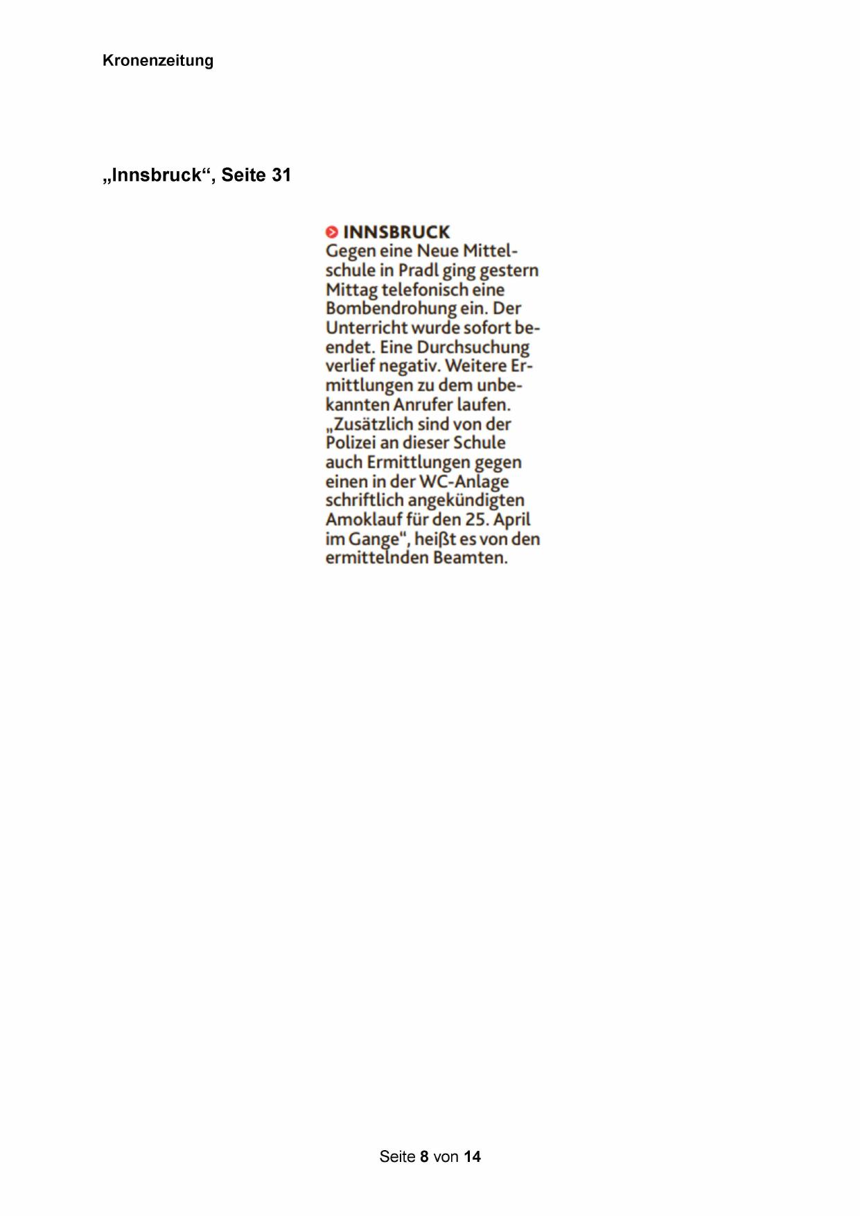 verlief negativ. Weitere Ermittlungen zu dem unbekannten Anrufer laufen.