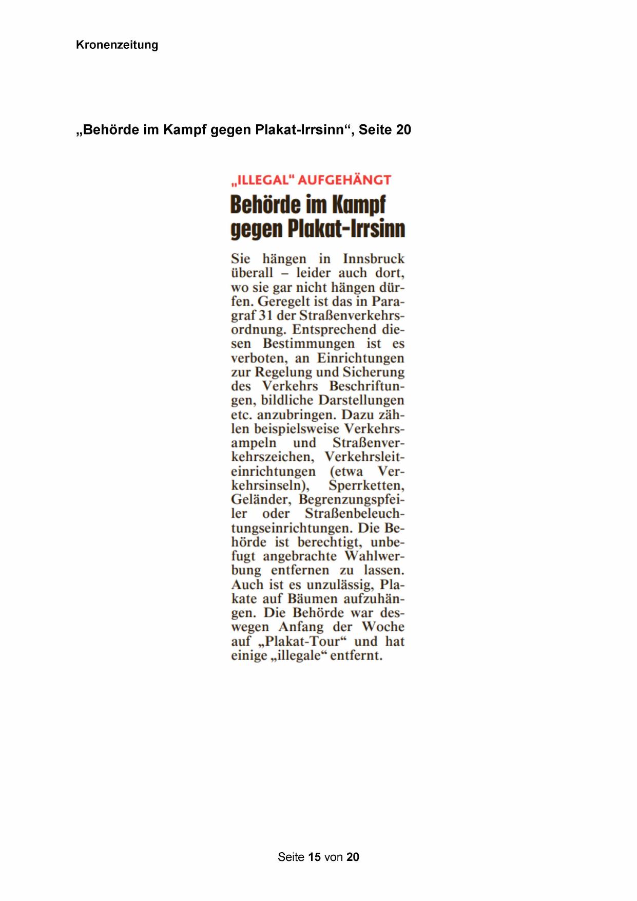 „Behörde im Kampf gegen Plakat-Irrsinn“, Seite 20