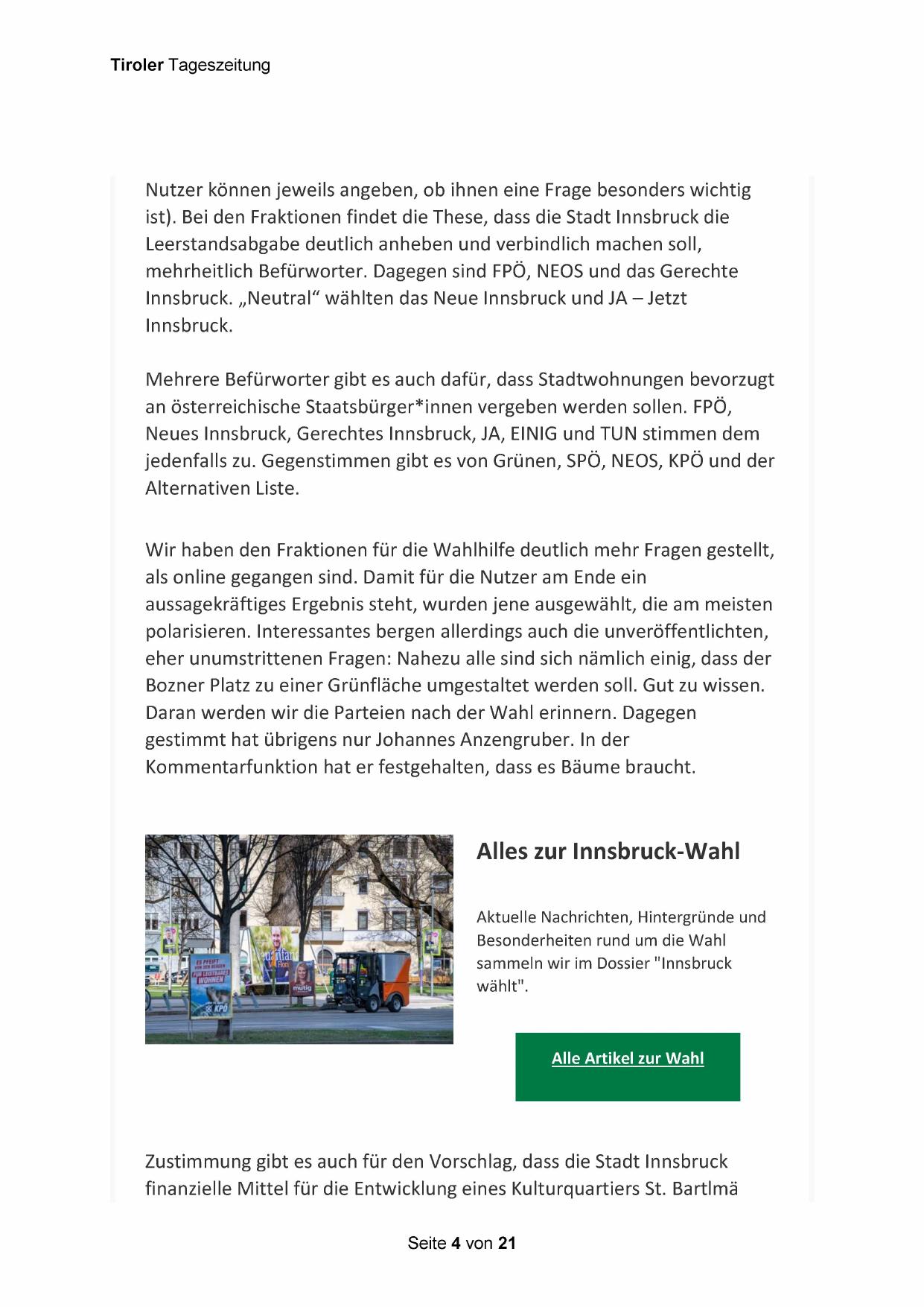 ist). Bei den Fraktionen findet die These, dass die Stadt Innsbruck die