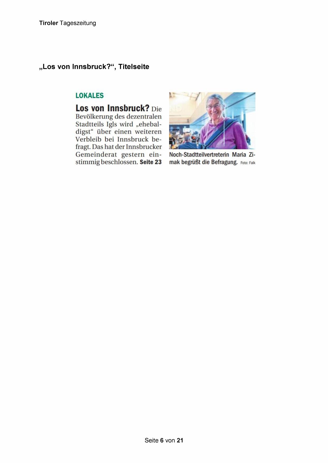 Verbleib bei Innsbruck befragt. Das hat der Innsbrucker : e