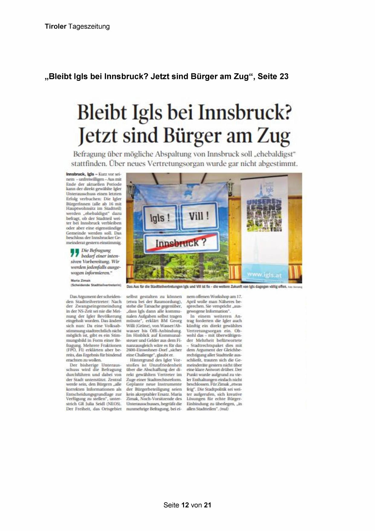 „Bleibt Igls bei Innsbruck? Jetzt sind Bürger am Zug“, Seite 23