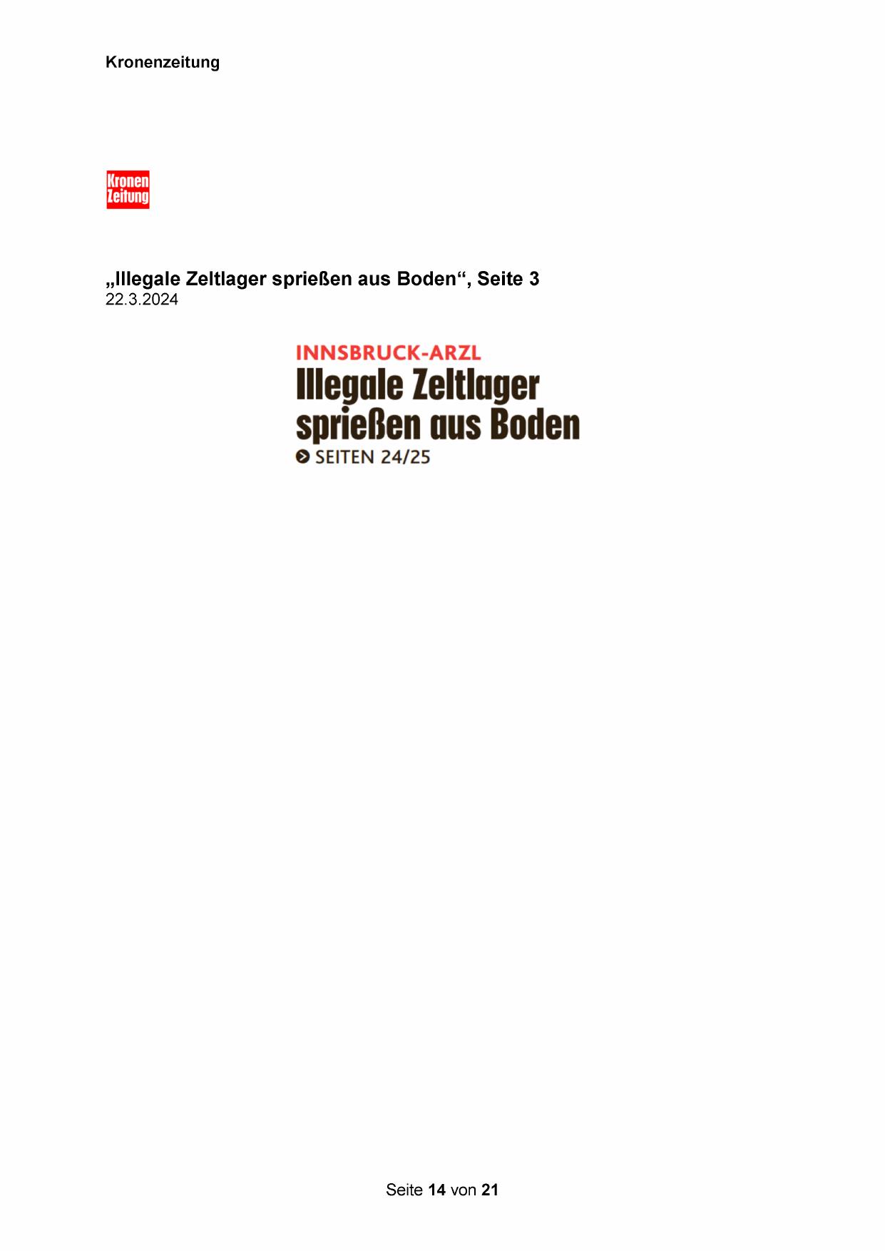 „Ilegale Zeltlager sprießen aus Boden“, Seite 3