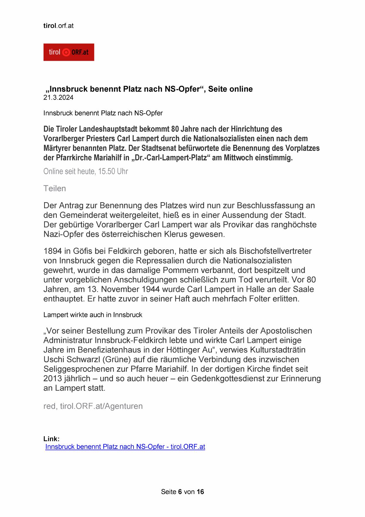 „Innsbruck benennt Platz nach NS-Opfer“, Seite online