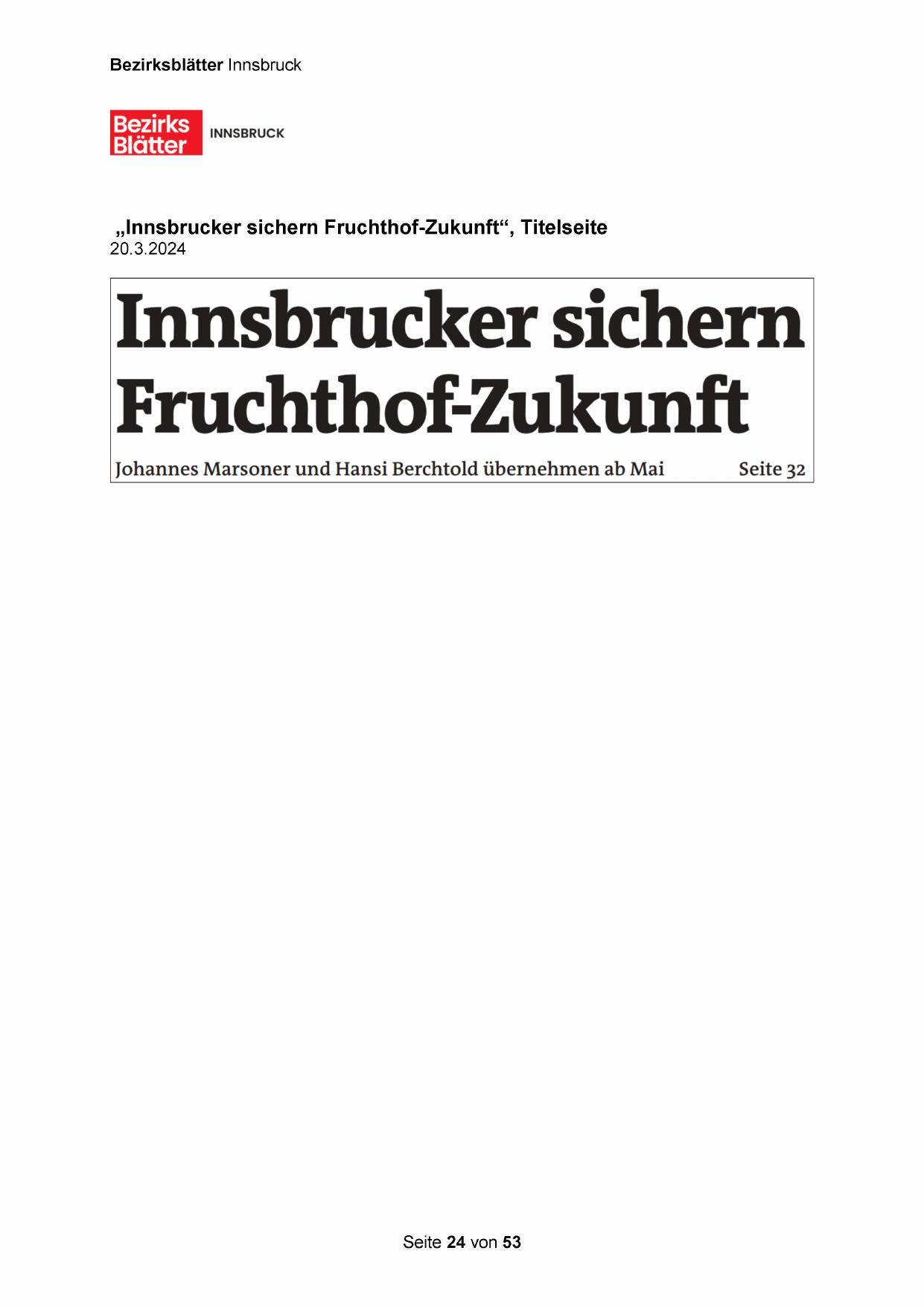 „Innsbrucker sichern Fruchthof-Zukunft‘“, Titelseite