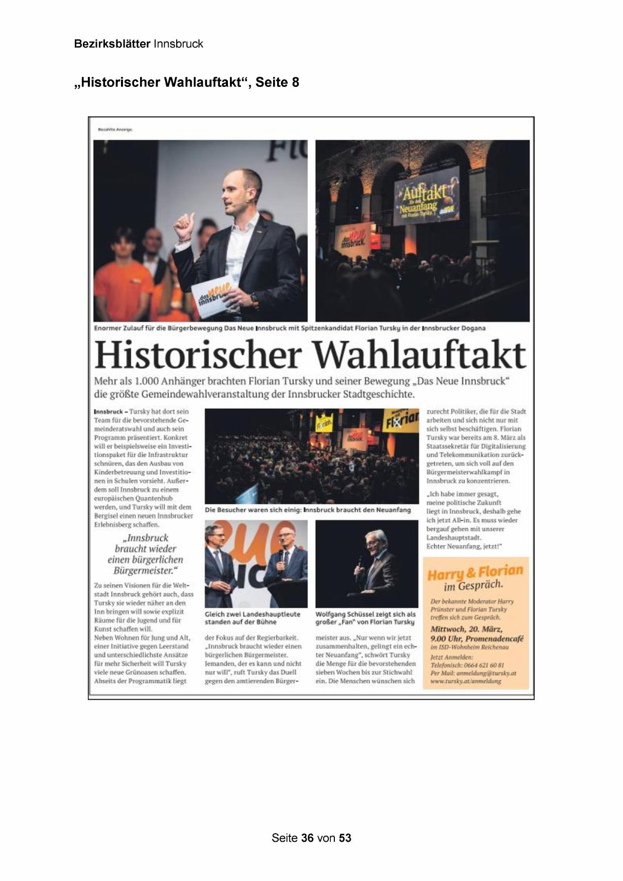 Enormer Zulauf für die Bürgerbewegung Das Neue Innsbruck mit Spitzenkandidat Florian Tursky in der Innsbrucker Dogana