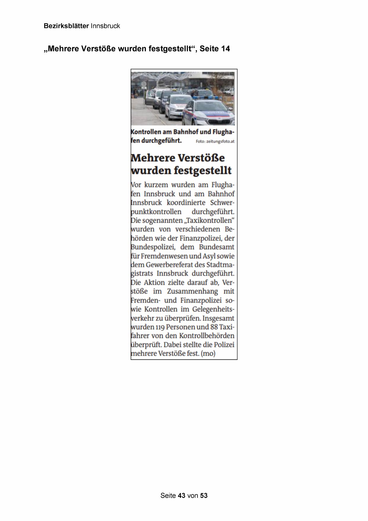 nsbruck koordinierte Schweryunktkontrollen durchgeführt.