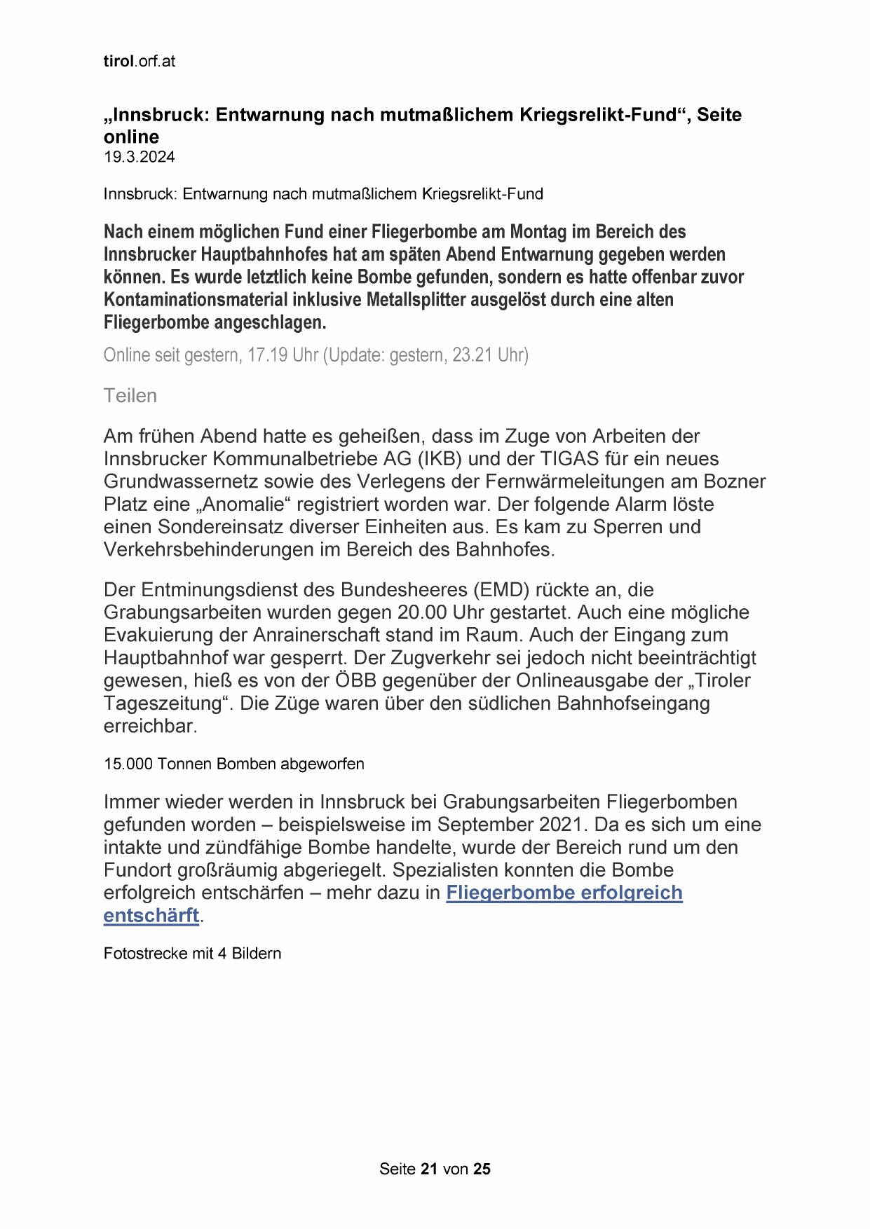 „Innsbruck: Entwarnung nach mutmaßlichem Kriegsrelikt-Fund“, Seite