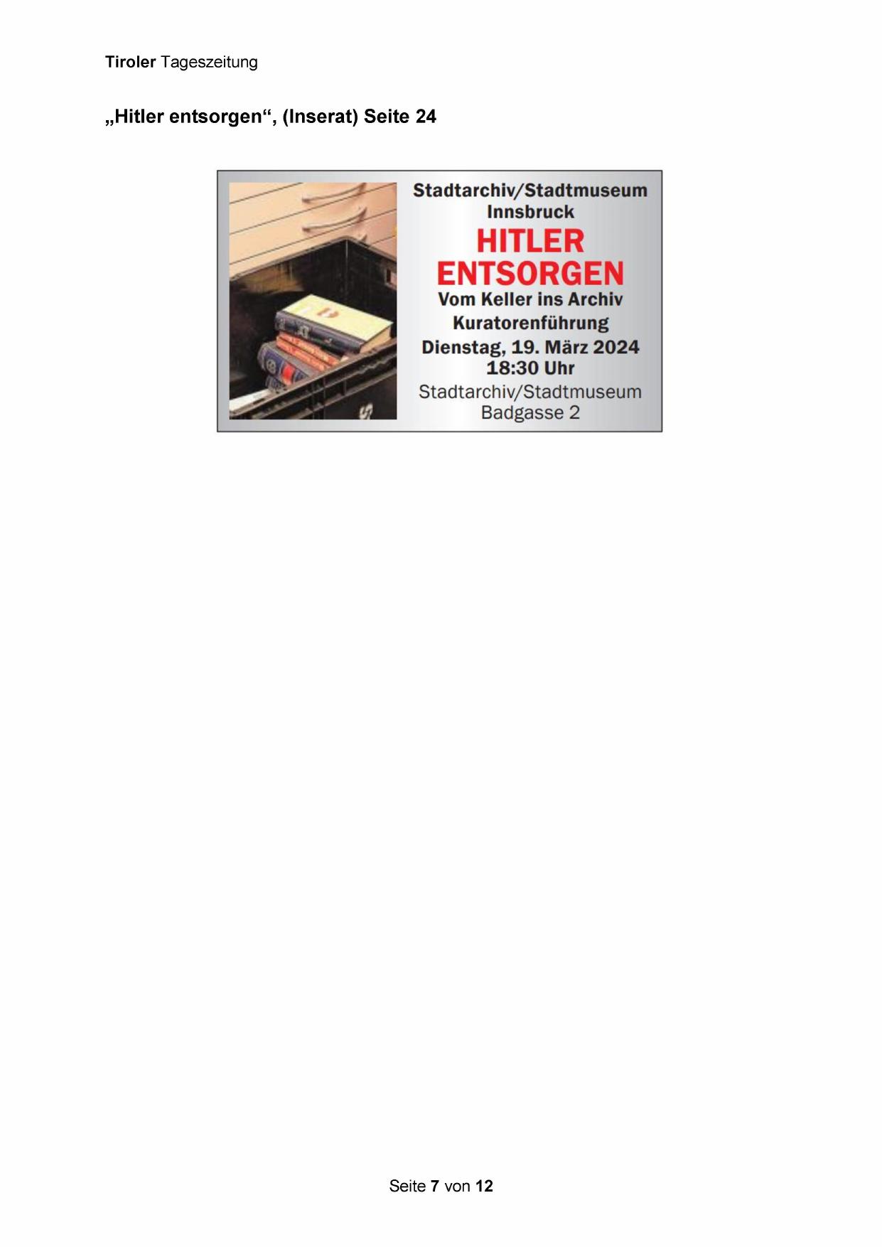 „Hitler entsorgen“, (Inserat) Seite 24