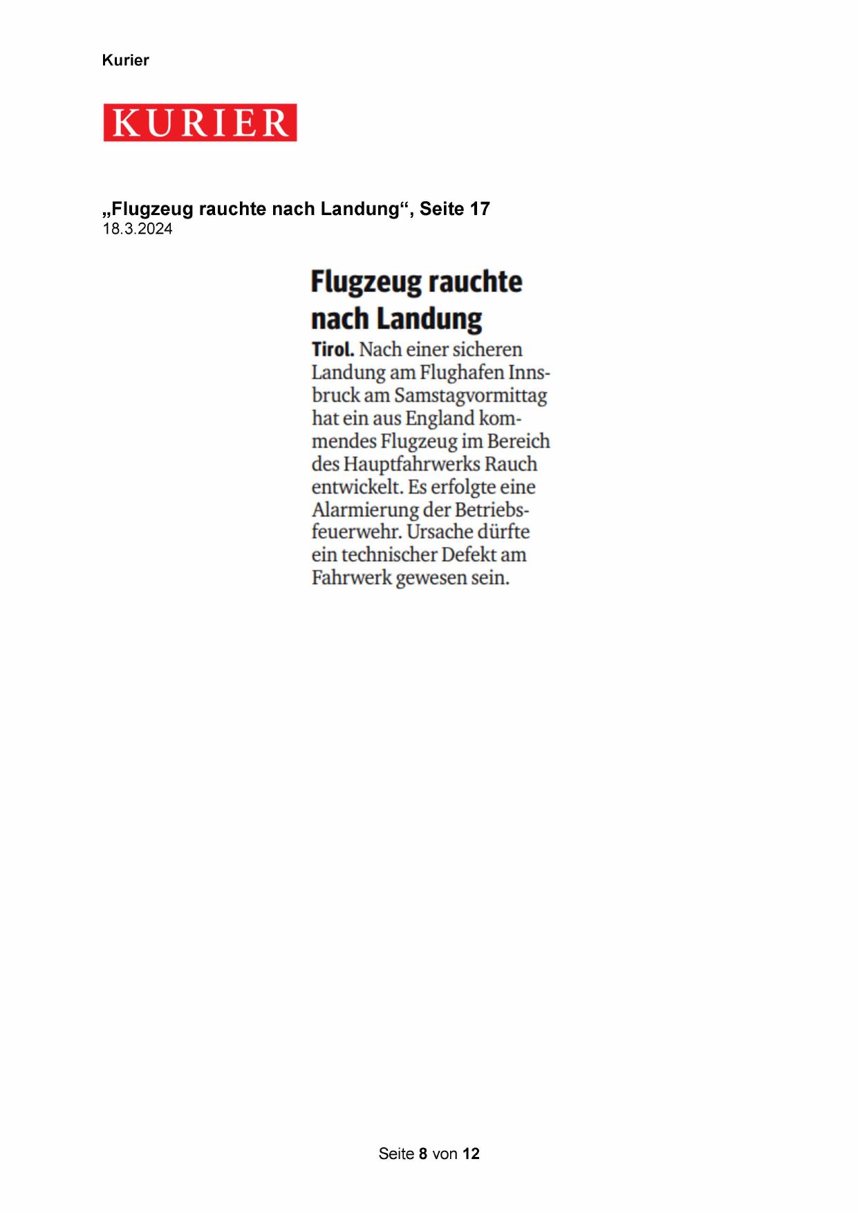 Landung am Flughafen Innsbruck am Samstagvormittag