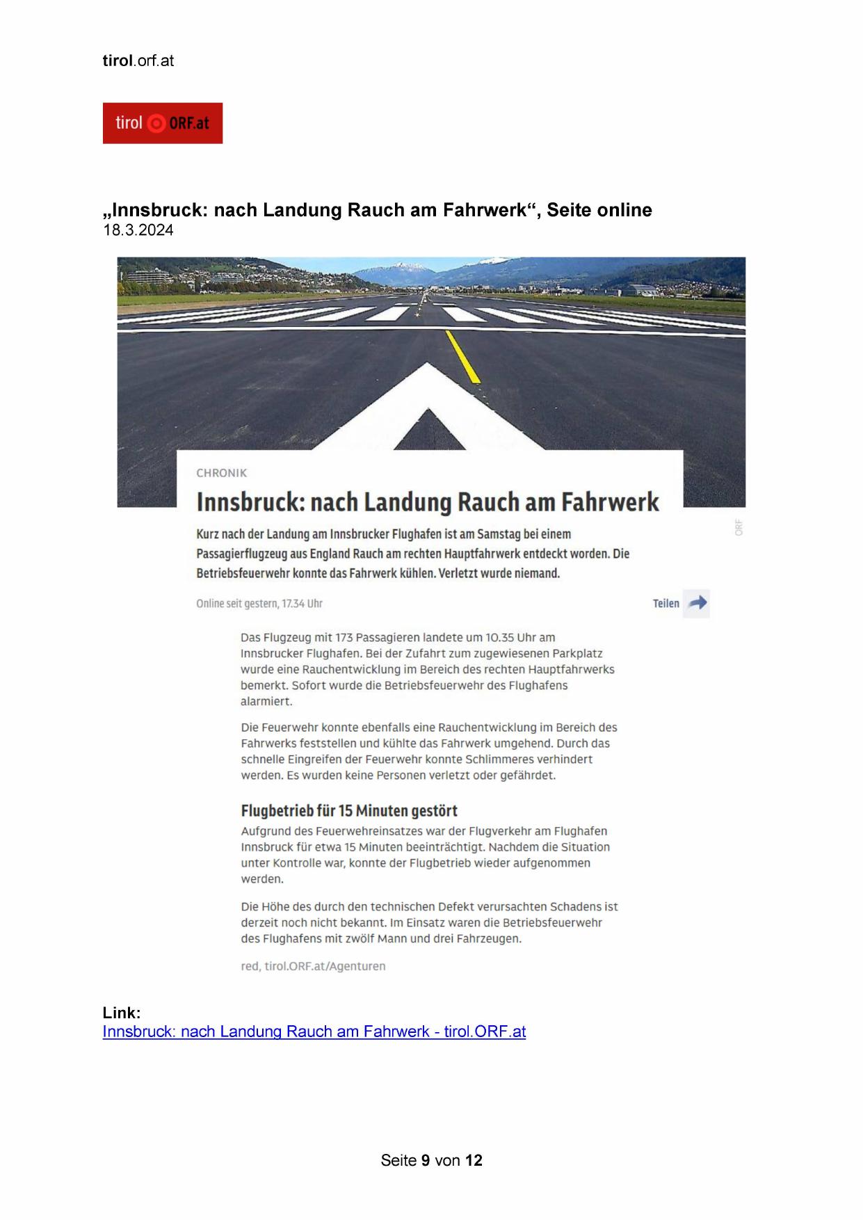 „Innsbruck: nach Landung Rauch am Fahrwerk“, Seite online