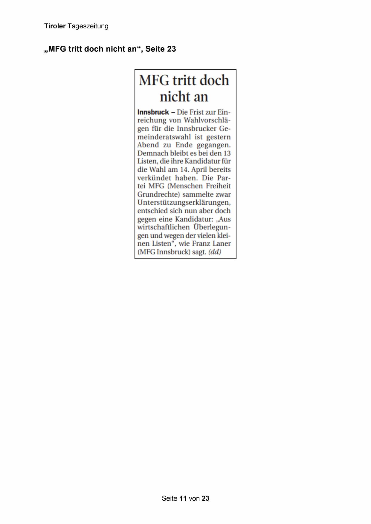 verkündet haben. Die Partei MFG (Menschen Freiheit