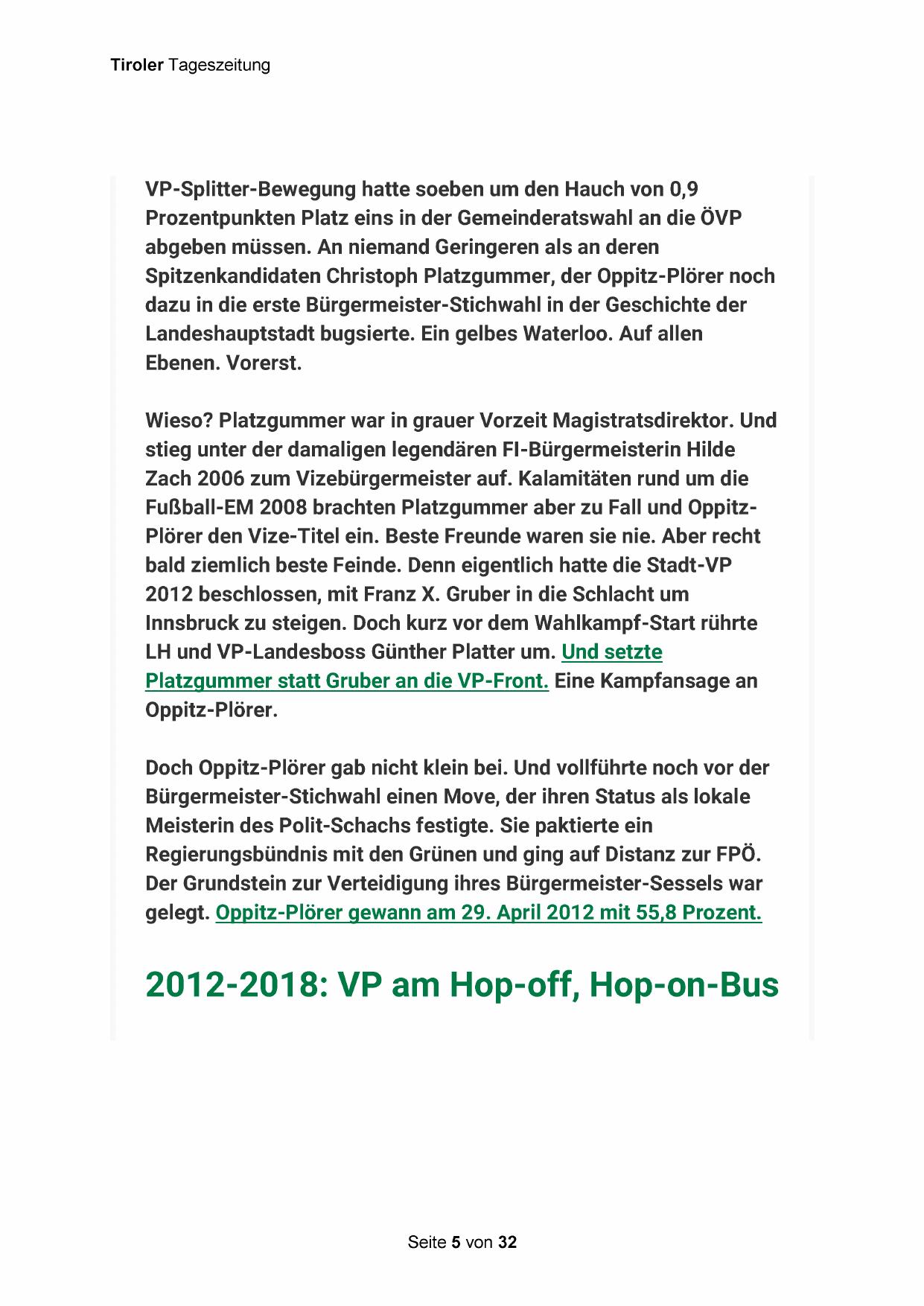 Innsbruck zu steigen. Doch kurz vor dem Wahlkampf-Start rührte