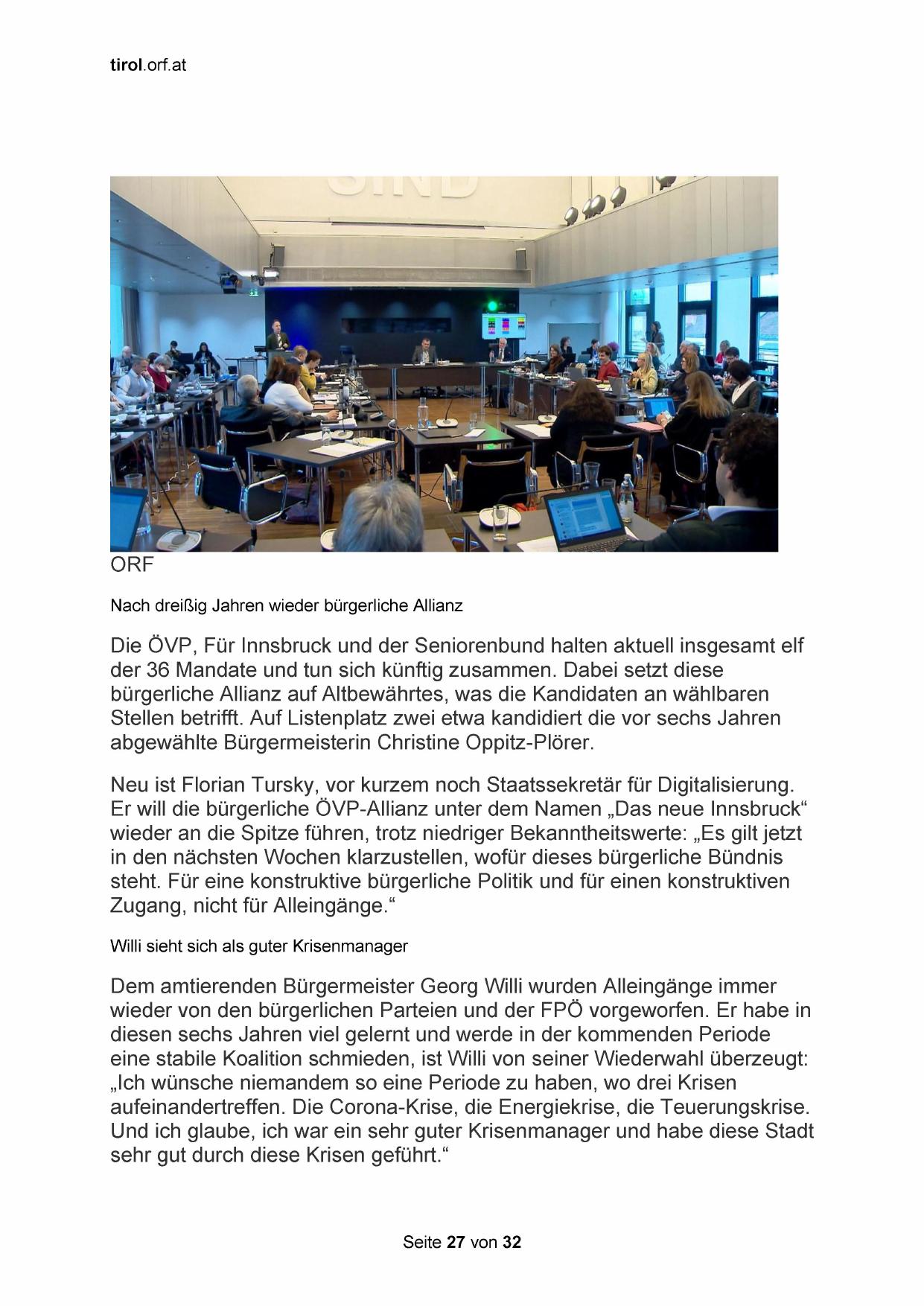 Die ÖVP, Für Innsbruck und der Seniorenbund halten aktuell insgesamt elf