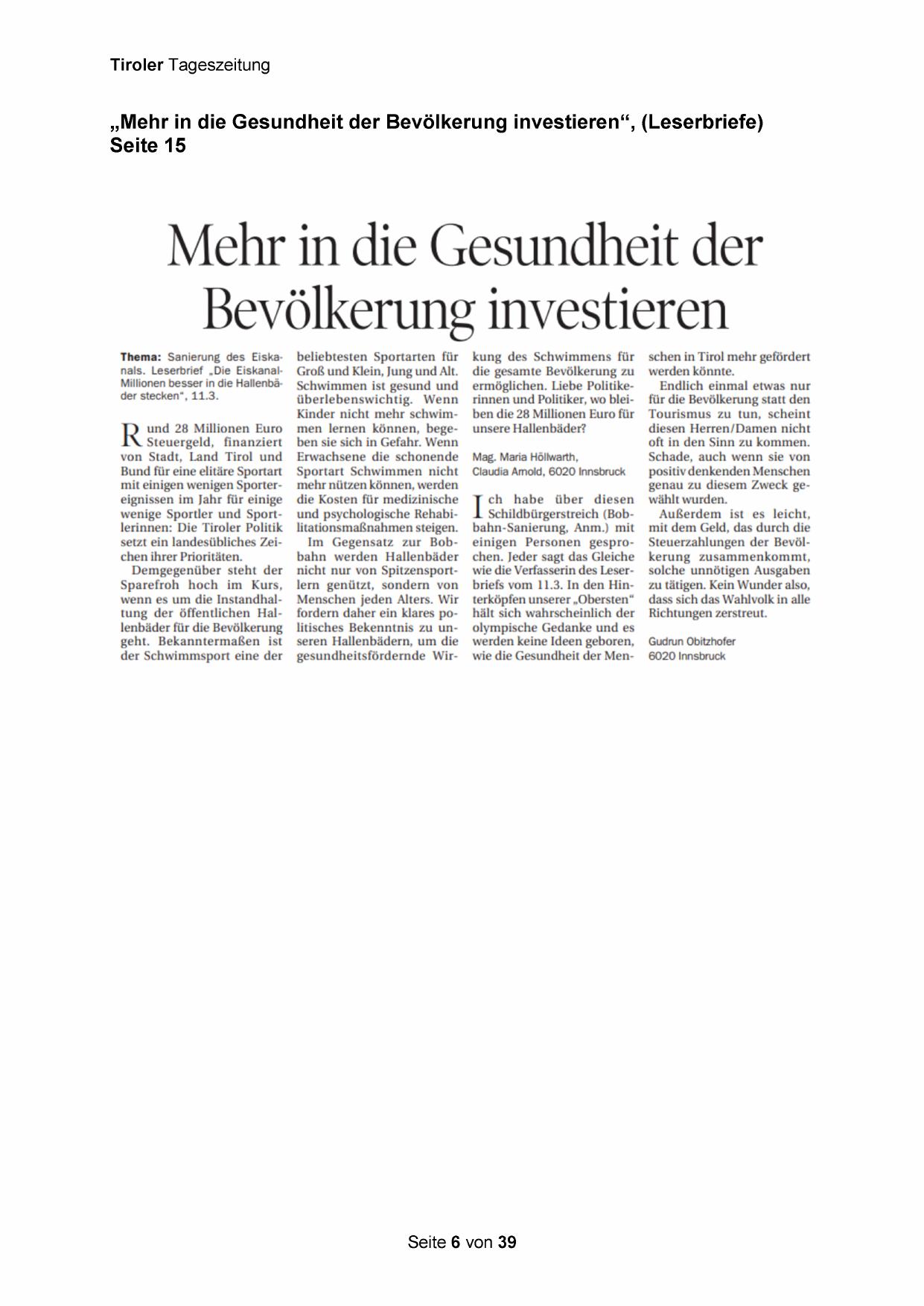 „Mehr in die Gesundheit der Bevölkerung investieren“, (Leserbriefe)