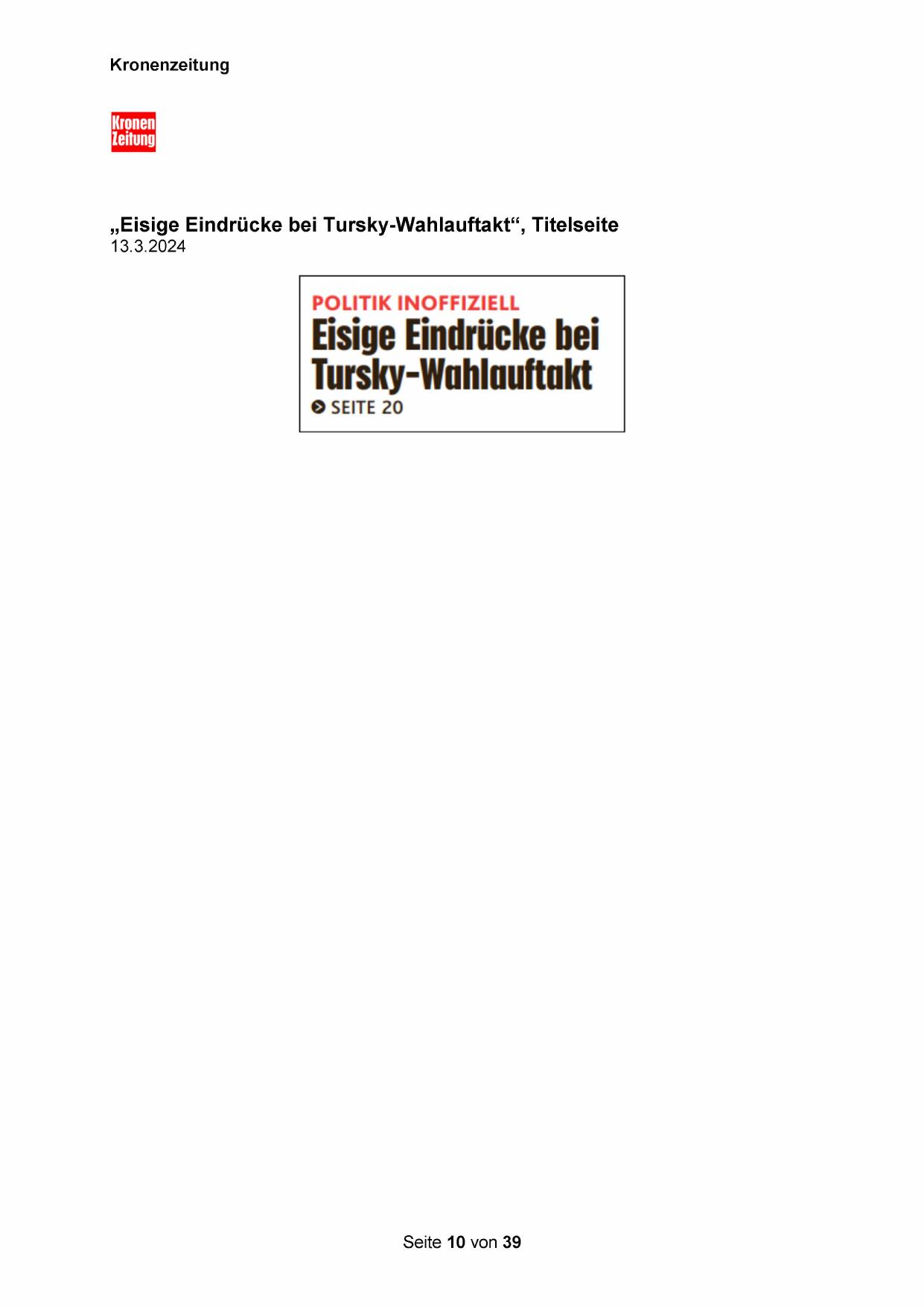 „Eisige Eindrücke bei Tursky-Wahlauftakt“, Titelseite
