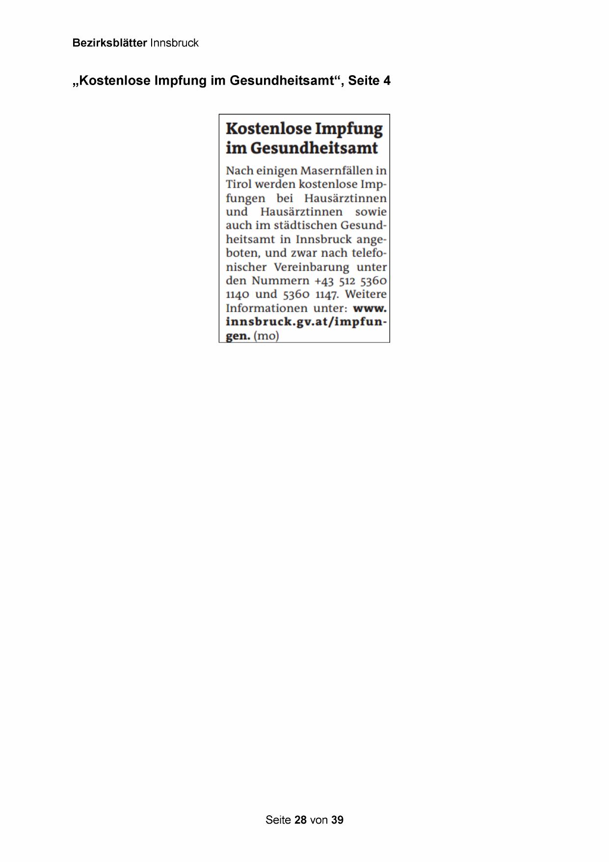auch im städtischen Gesundheitsamt in Innsbruck angeboten, und zwar nach telefonischer Vereinbarung unter