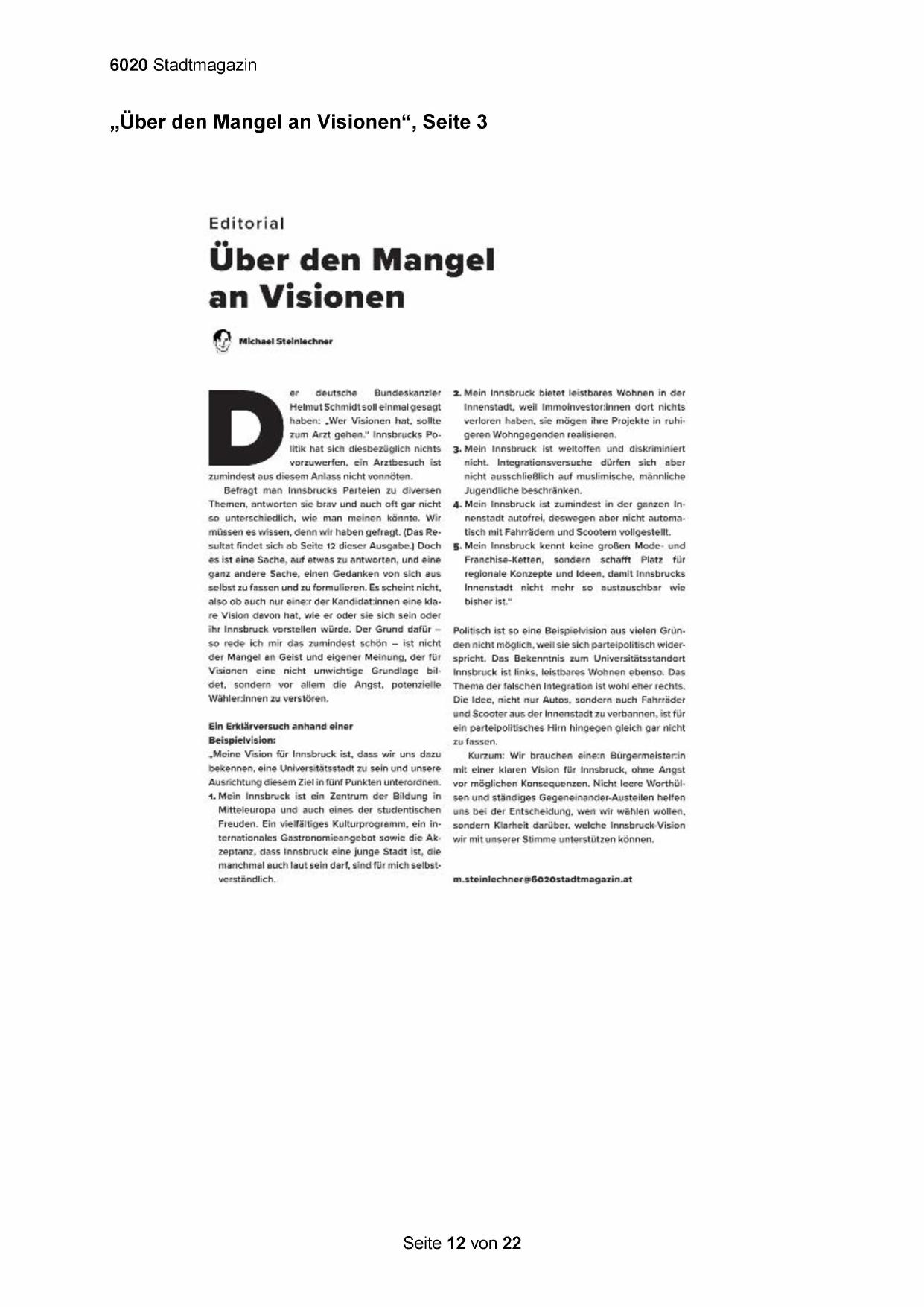 mit einer klaren Vision für Innsbruck, ohne Angst