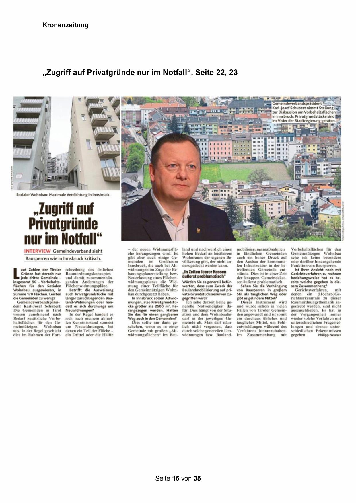 In Innsbruck sollen Altwidmungen, also Privatgrundstücke größer als 2500 m’, herangezogen werden. Halten
