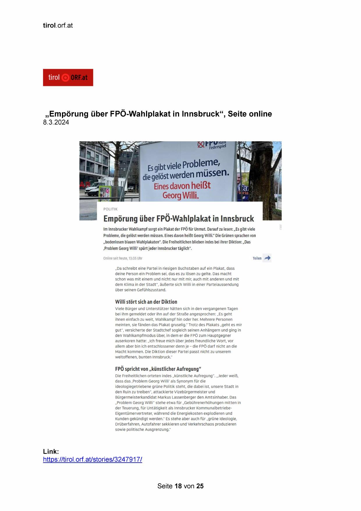 „Empörung über FPÖ-Wahlplakat in Innsbruck“, Seite online