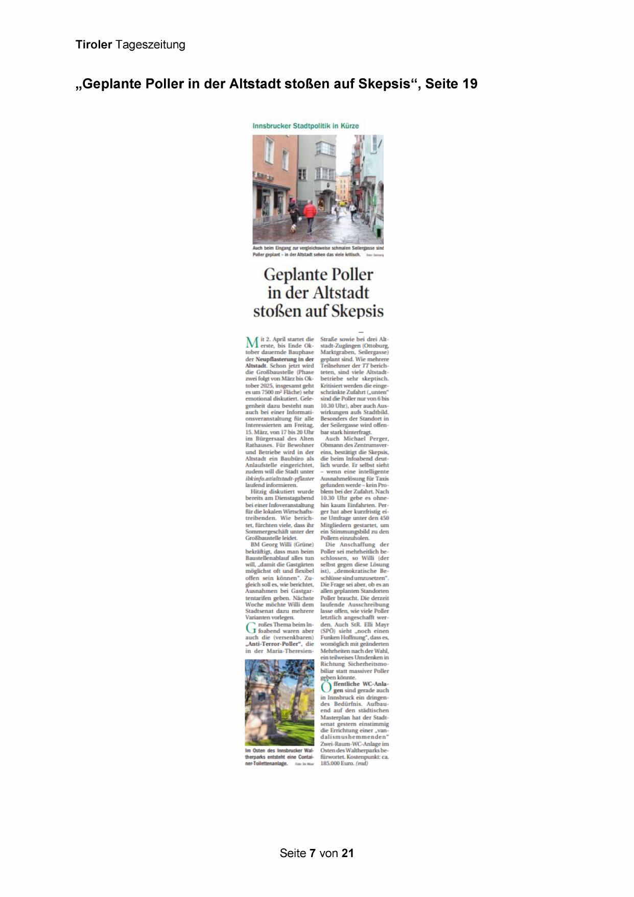 „Geplante Poller in der Altstadt stoßen auf Skepsis“, Seite 19