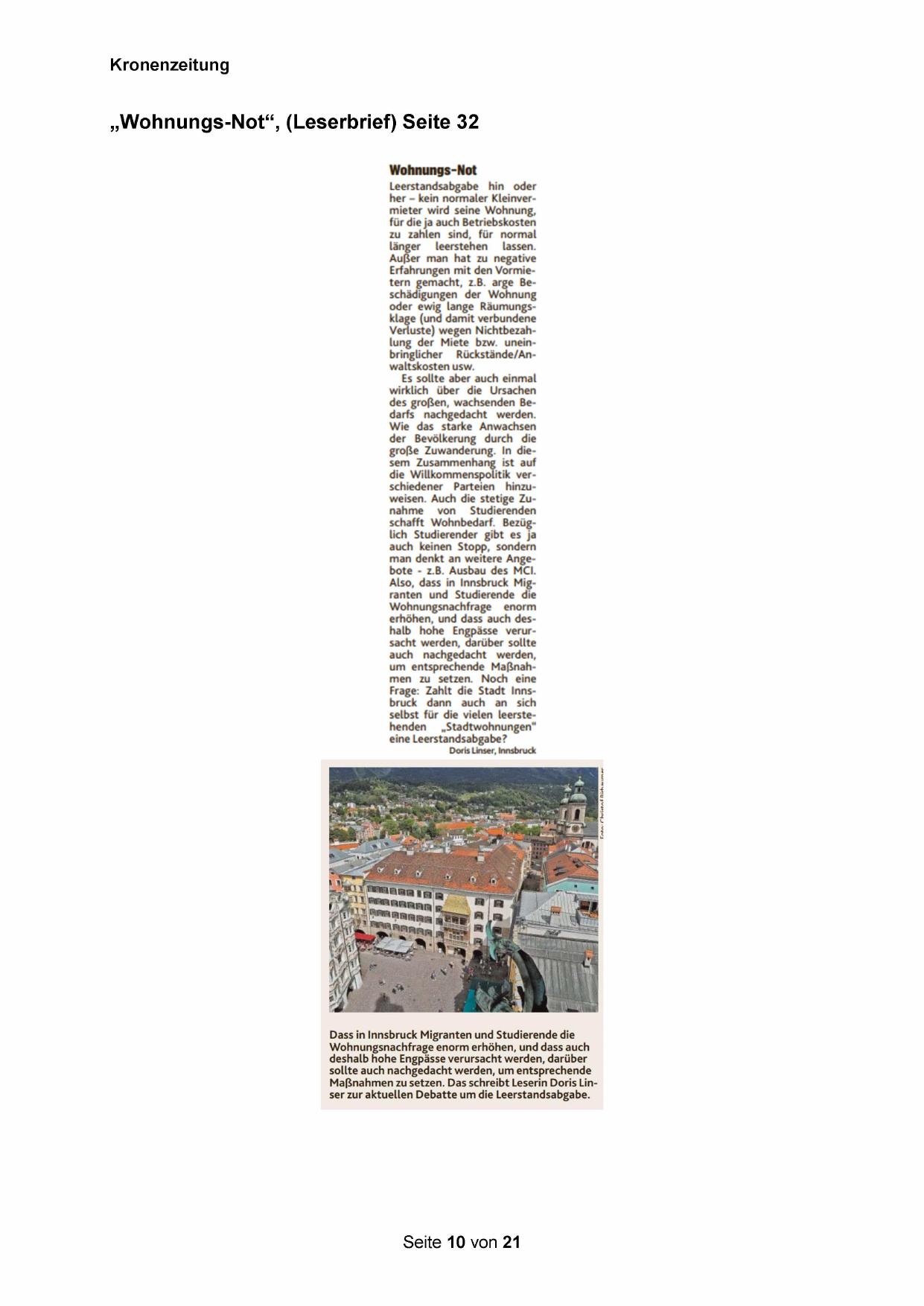 „Wohnungs-Not“, (Leserbrief) Seite 32