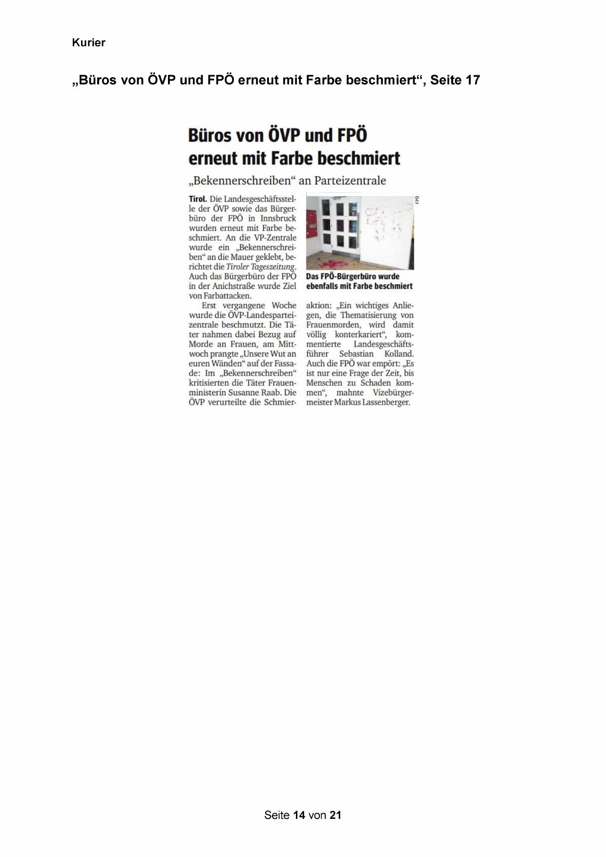 „Büros von ÖVP und FPÖ erneut mit Farbe beschmiert“, Seite 17
