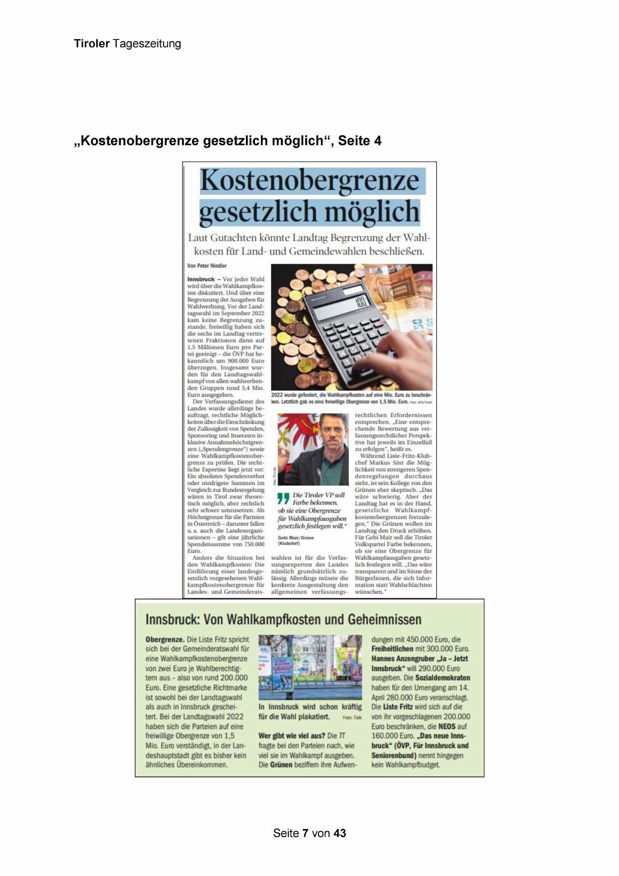 Innsbruck: Von Wahlkampfkosten und Geheimnissen