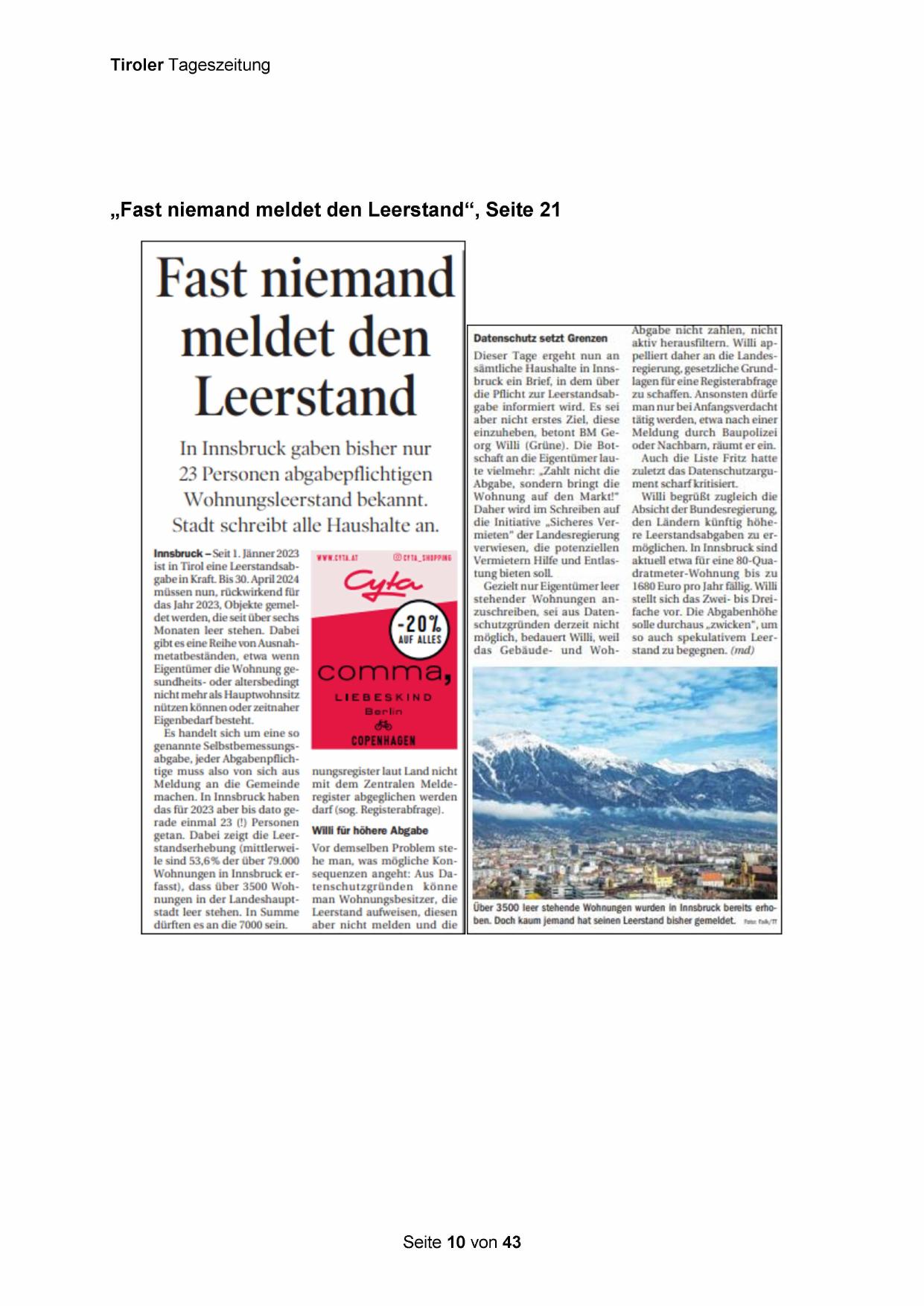 den Ländern künftig höhere Leerstandsabgaben zu ermöglichen. In Innsbruck sind