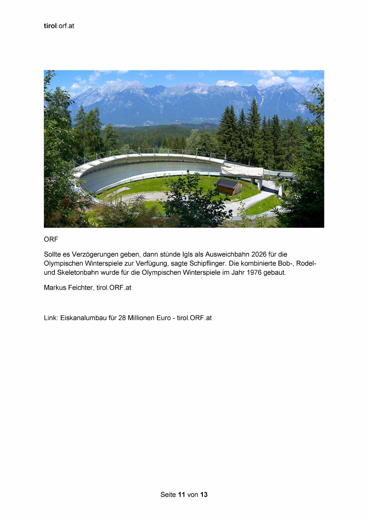 Olympischen Winterspiele zur Verfügung, sagte Schipflinger. Die kombinierte Bob-, Rodelund Skeletonbahn wurde für die Olympischen Winterspiele im Jahr 1976 gebaut.