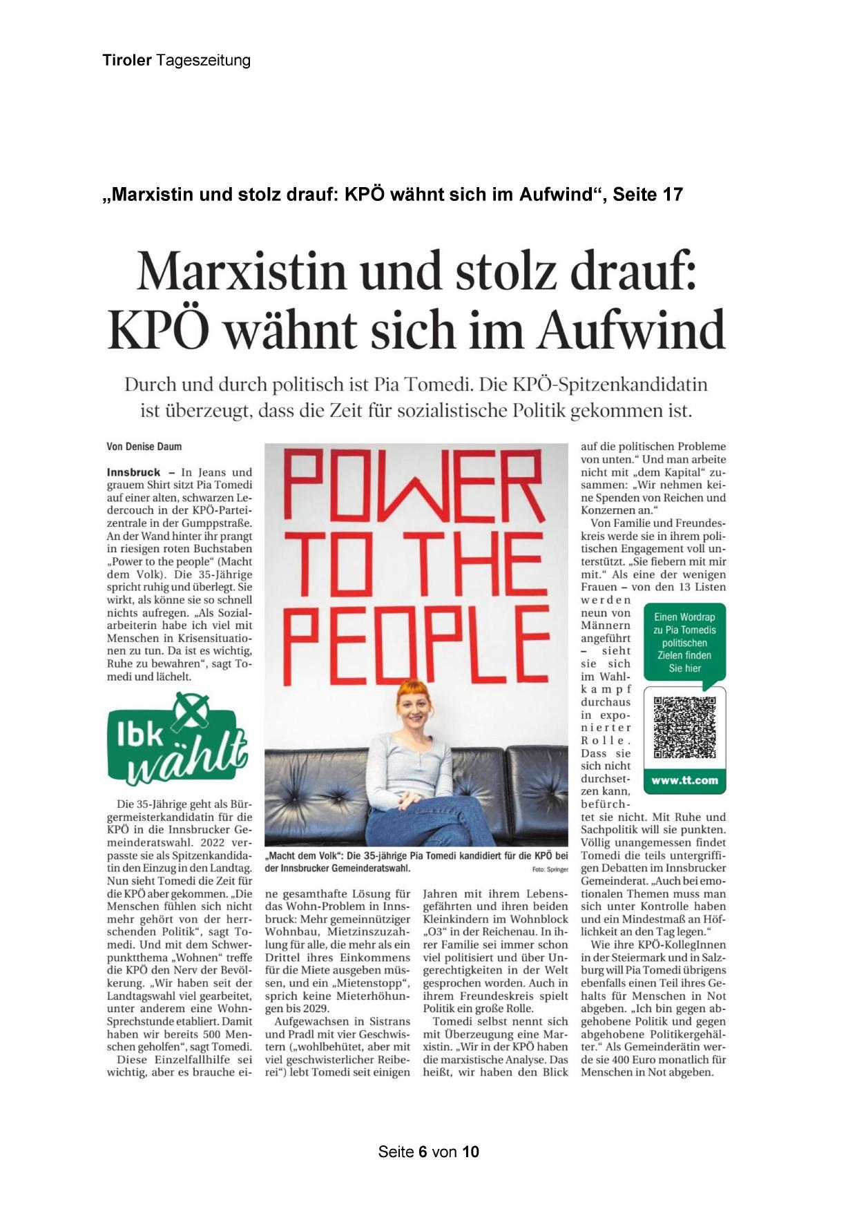 „Marxistin und stolz drauf: KPÖ wähnt sich im Aufwind“, Seite 17