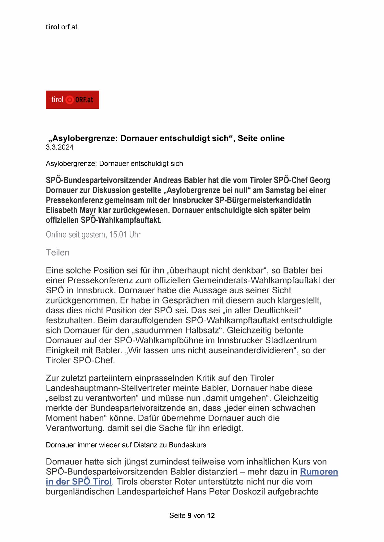 „Asylobergrenze: Dornauer entschuldigt sich‘“, Seite online