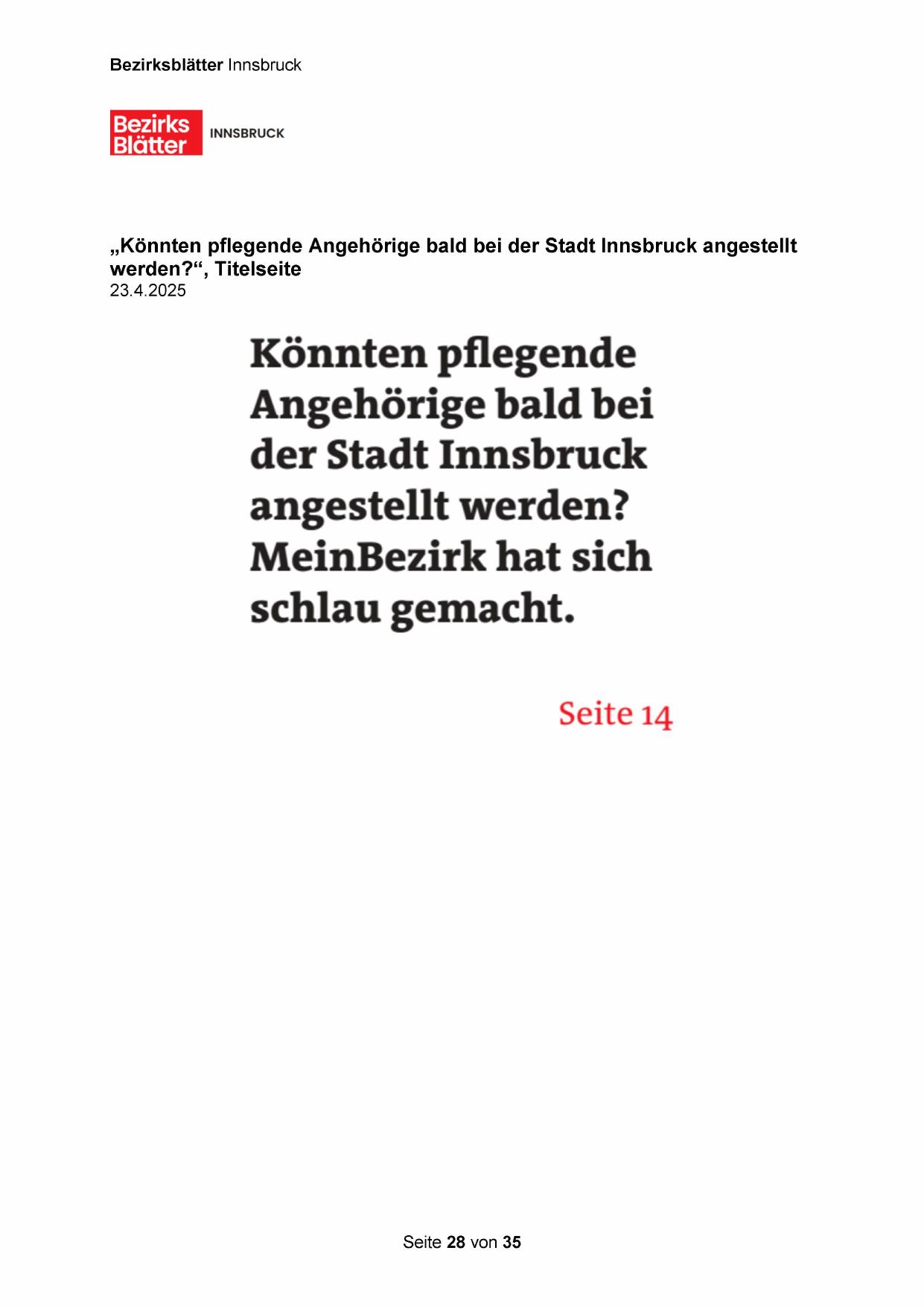 „Könnten pflegende Angehörige bald bei der Stadt Innsbruck angestellt