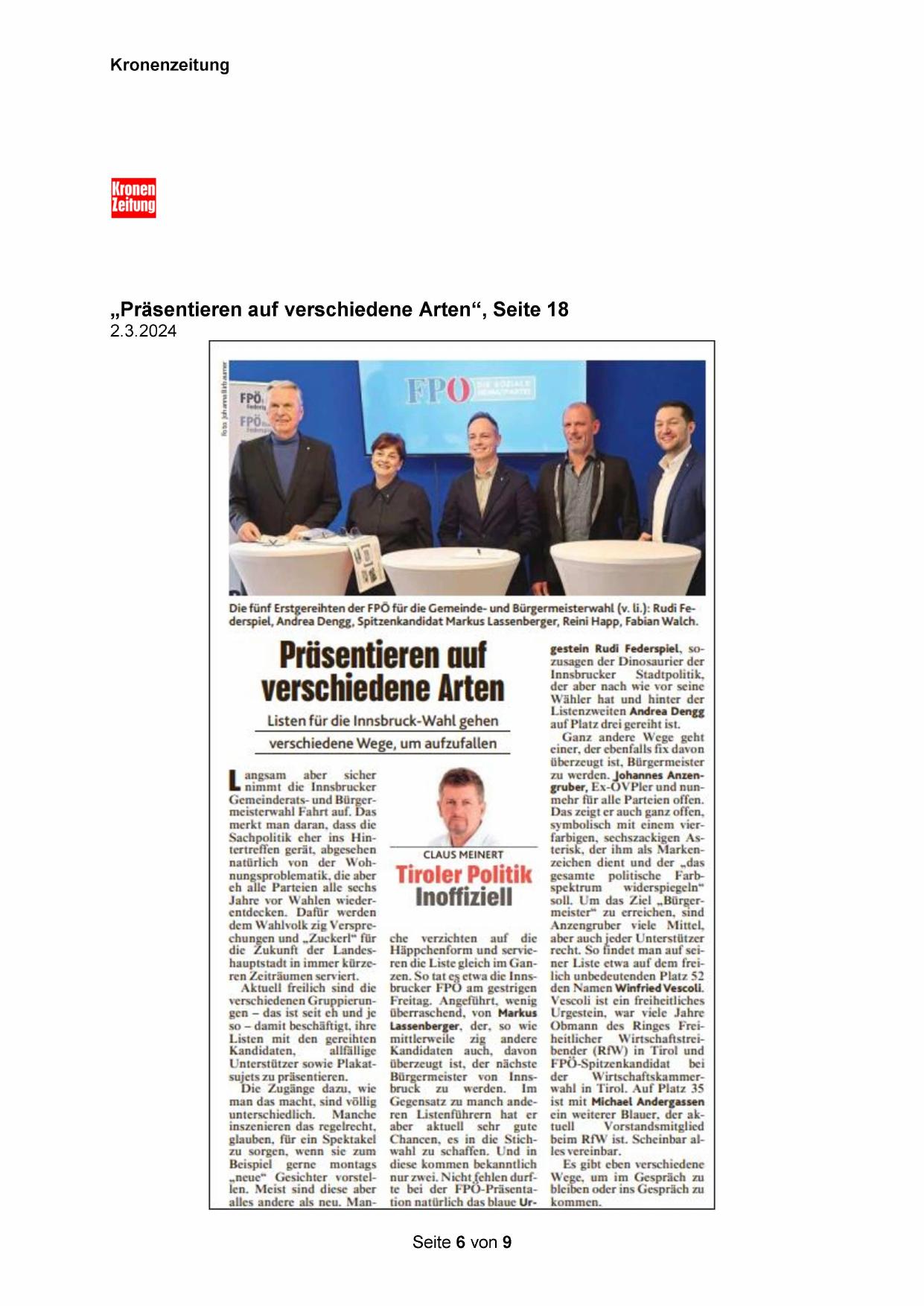 Häppchenform und servieren die Liste gleich im Ganzen. So tat cs etwa die Innsbrucker FPO am gestrigen