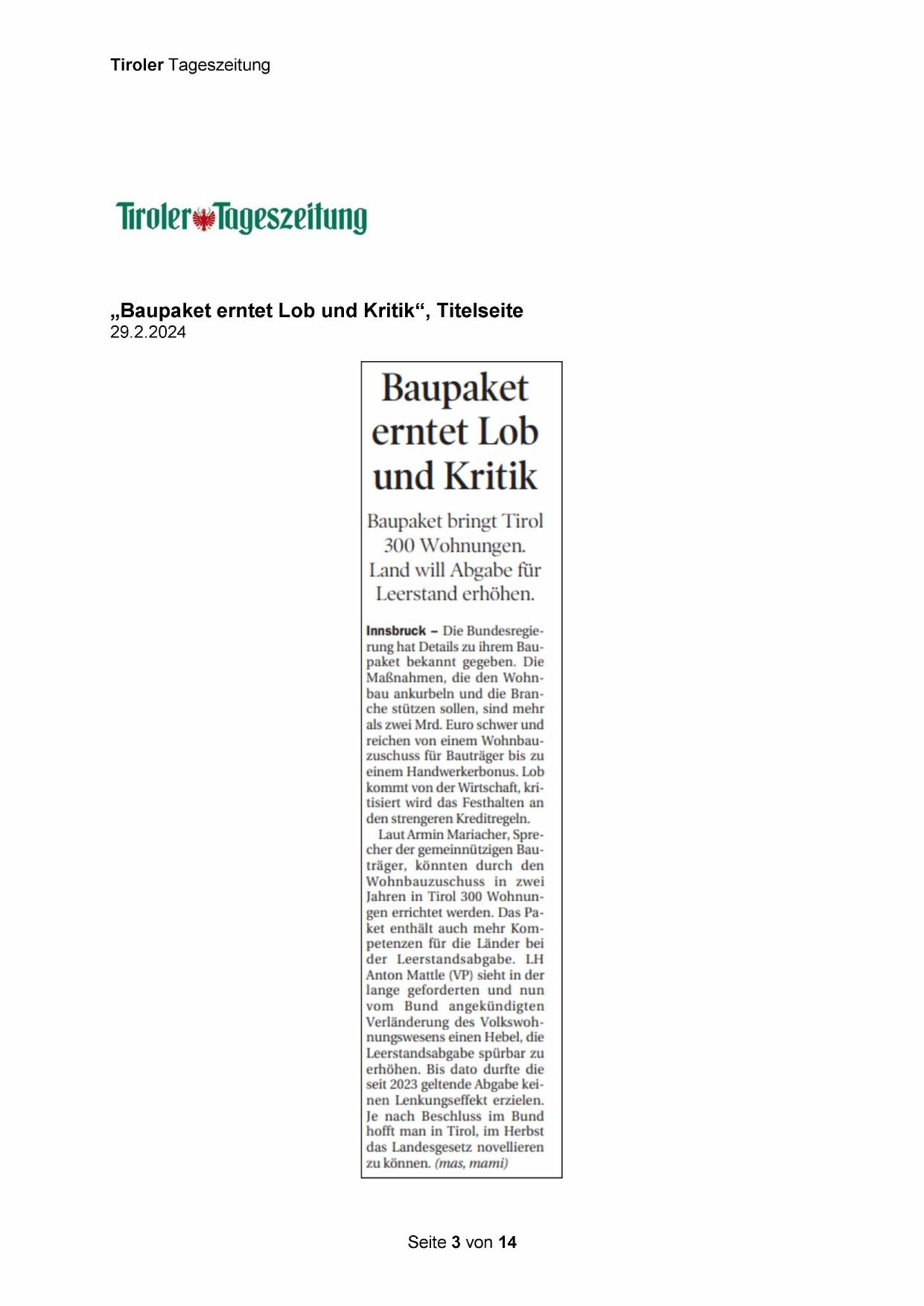 Innsbruck - Die Bundesregierung hat Details zu ihrem Baupaket bekannt gegeben. Die