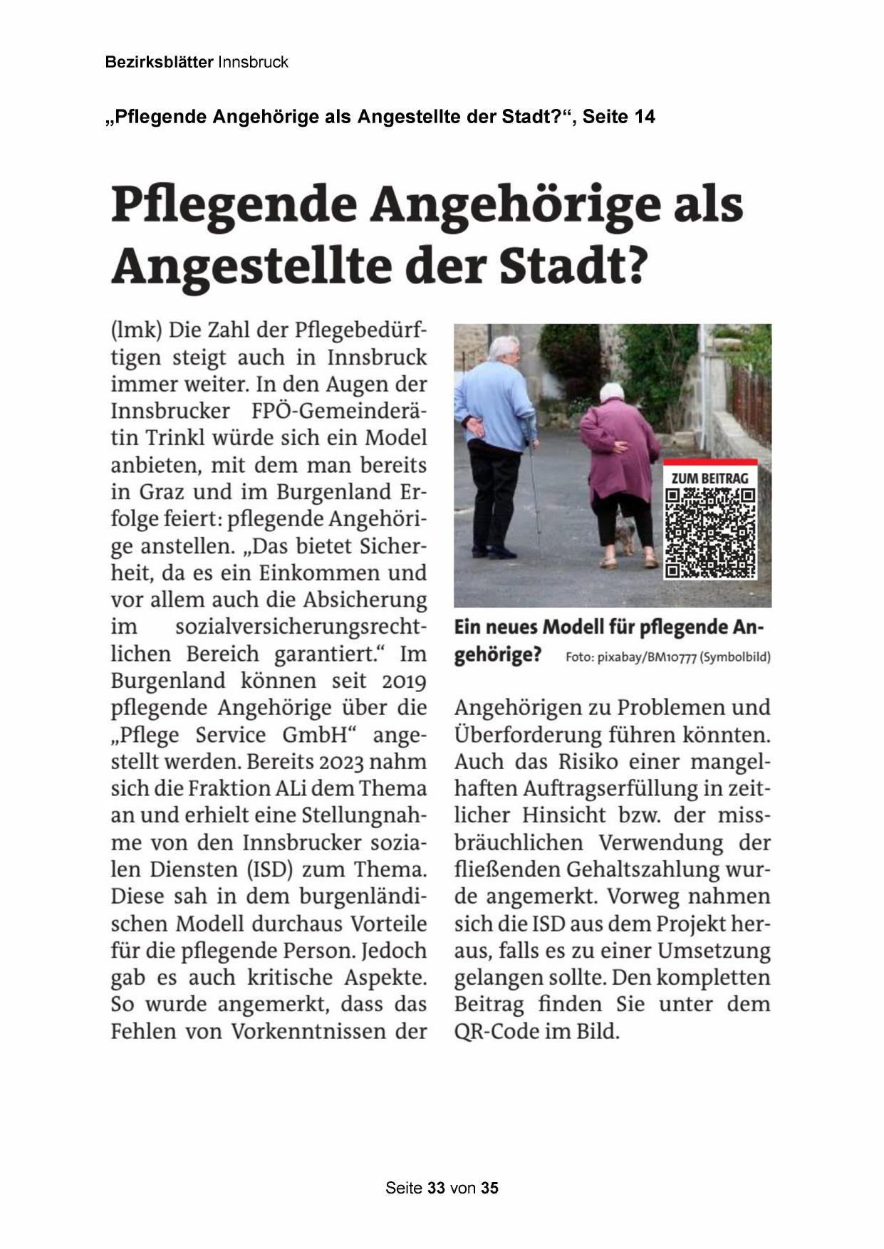 „Pflegende Angehörige als Angestellte der Stadt?“, Seite 14
