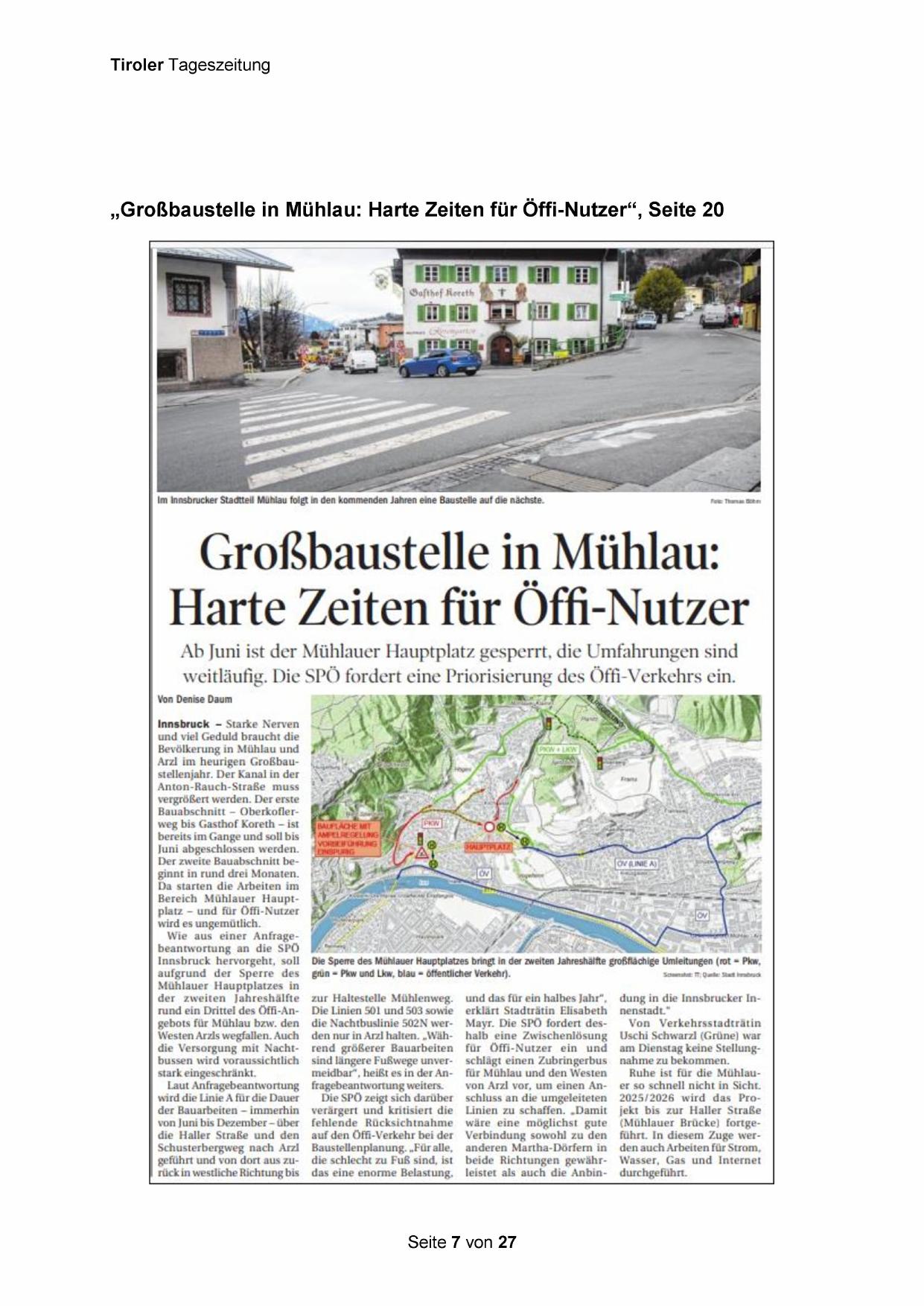 Bereich Mühlauer Hauptplatz — und für Öffi-Nutzer
