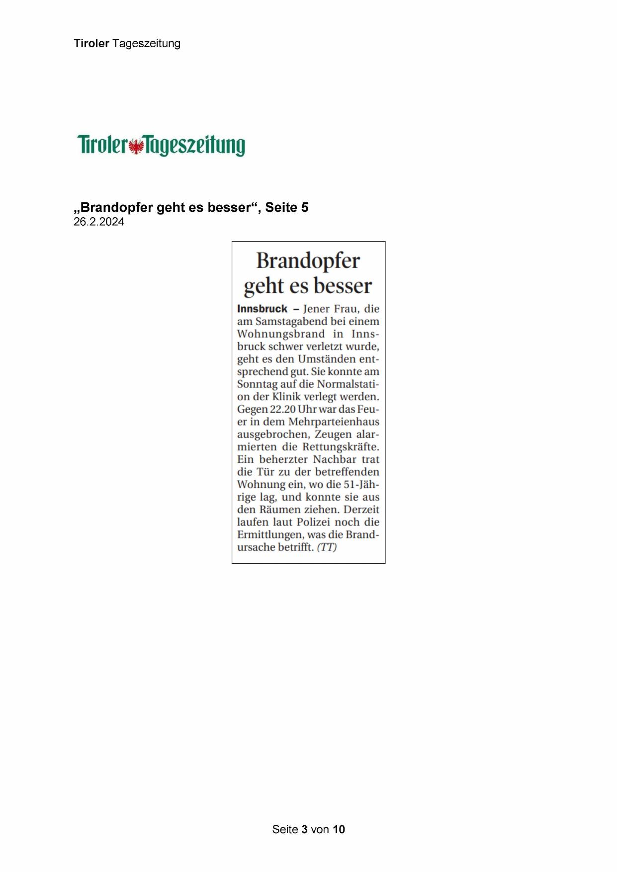 Wohnungsbrand in Innsbruck schwer verletzt wurde,