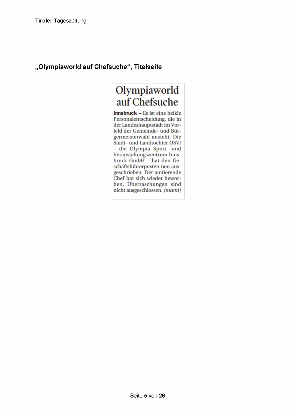 Veranstaltungszentrum Innsbruck GmbH - hat den Geschäftsführerposten neu ausgeschrieben. Der amtierende