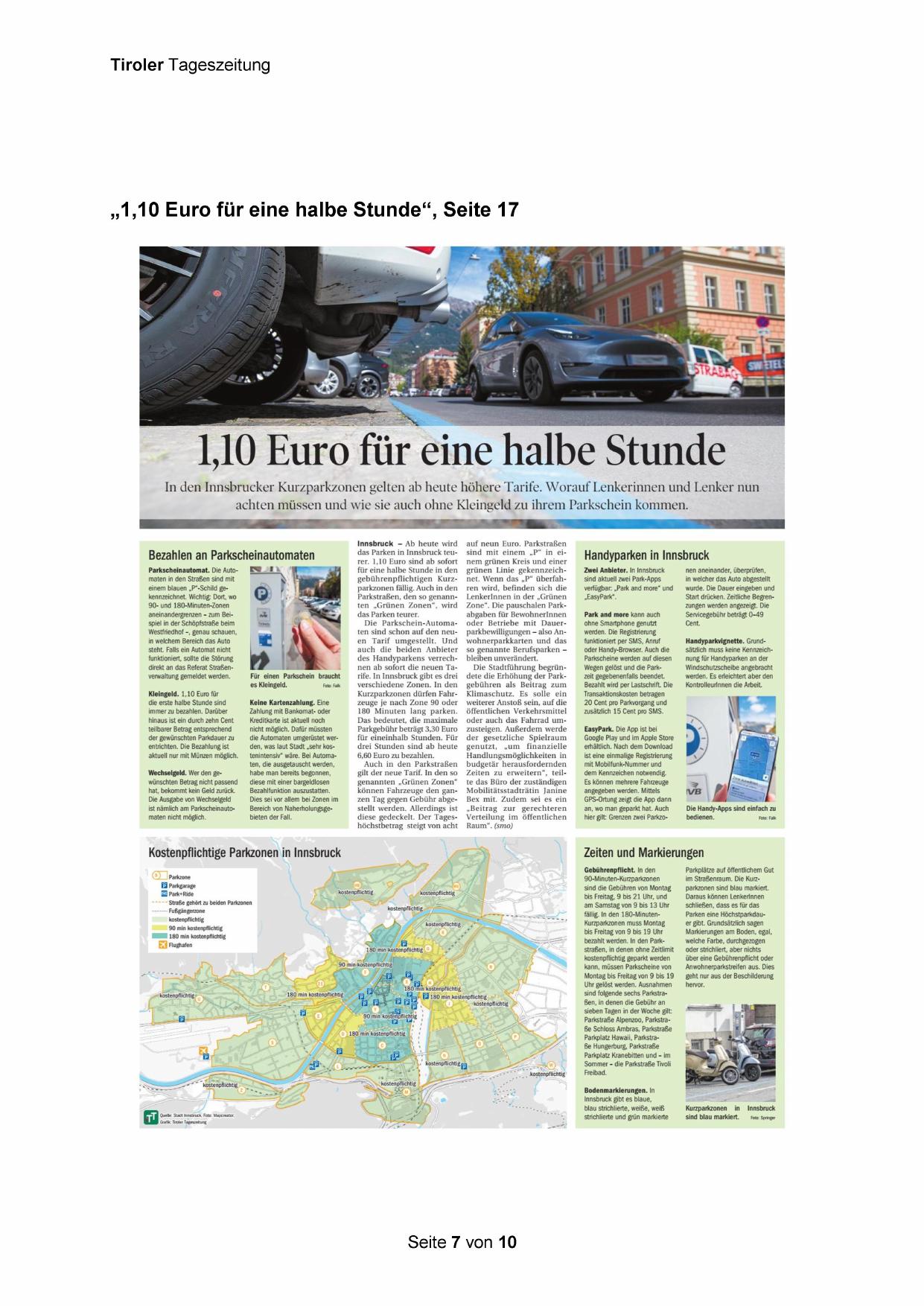 das Parken in Innsbruck teurer. 1,10 Euro sind ab sofort