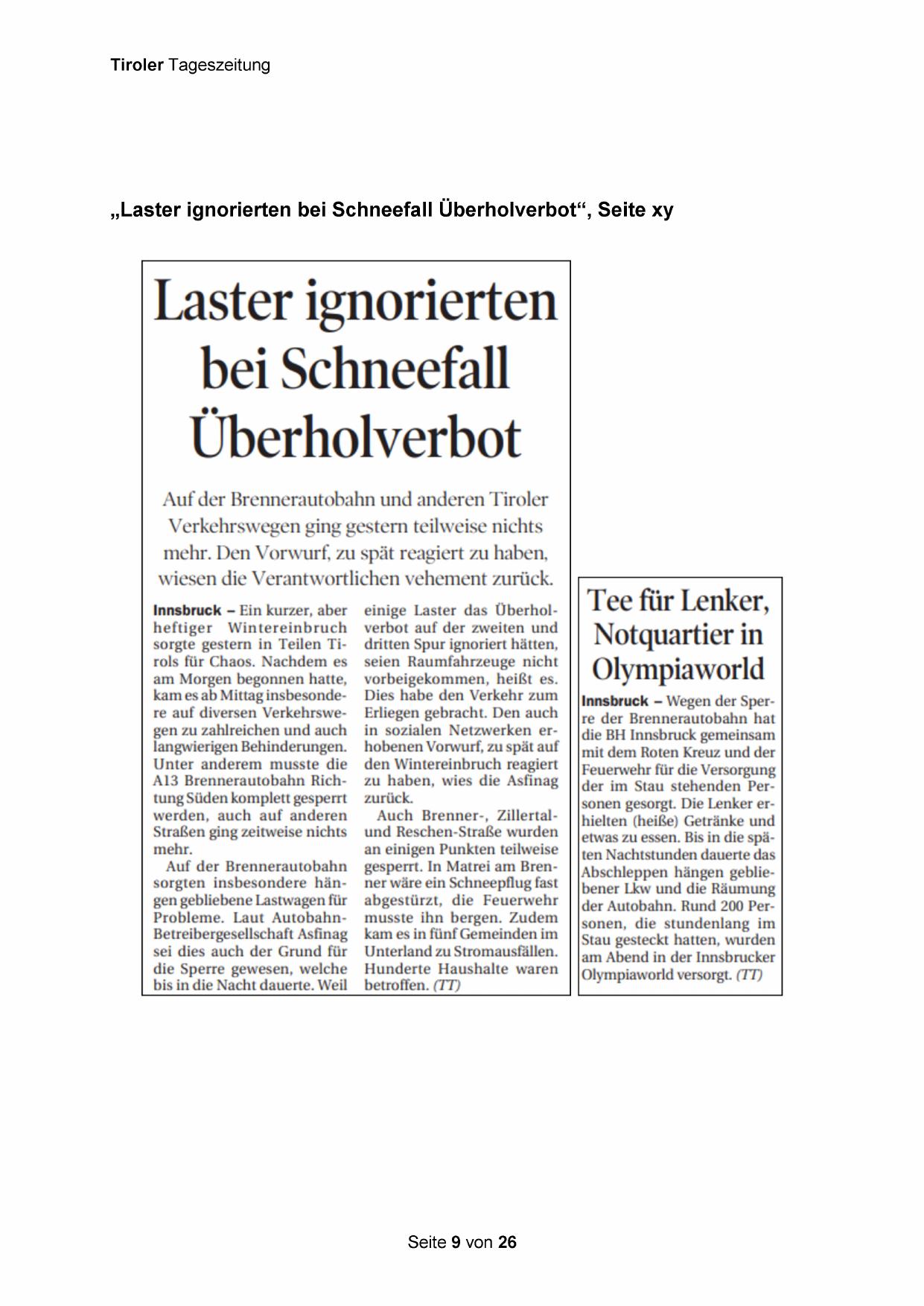 „Laster ignorierten bei Schneefall Überholverbot“, Seite xy