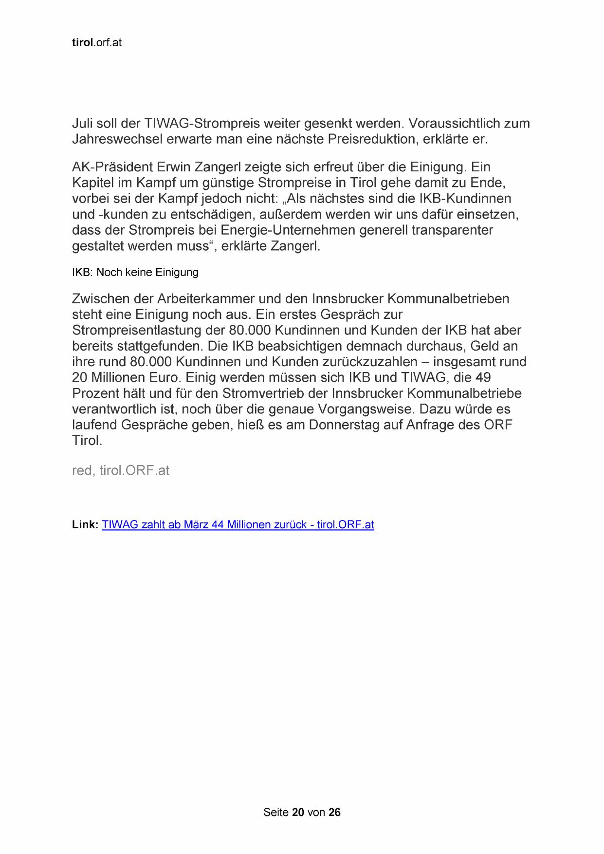 Link: TIWAG zahlt ab März 44 Millionen zurück - tirol.ORF.at