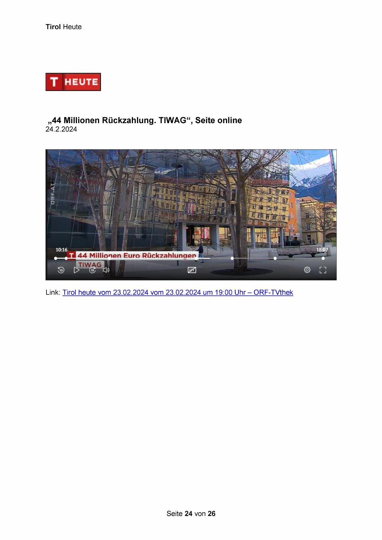 „44 Millionen Rückzahlung. TIWAG“, Seite online