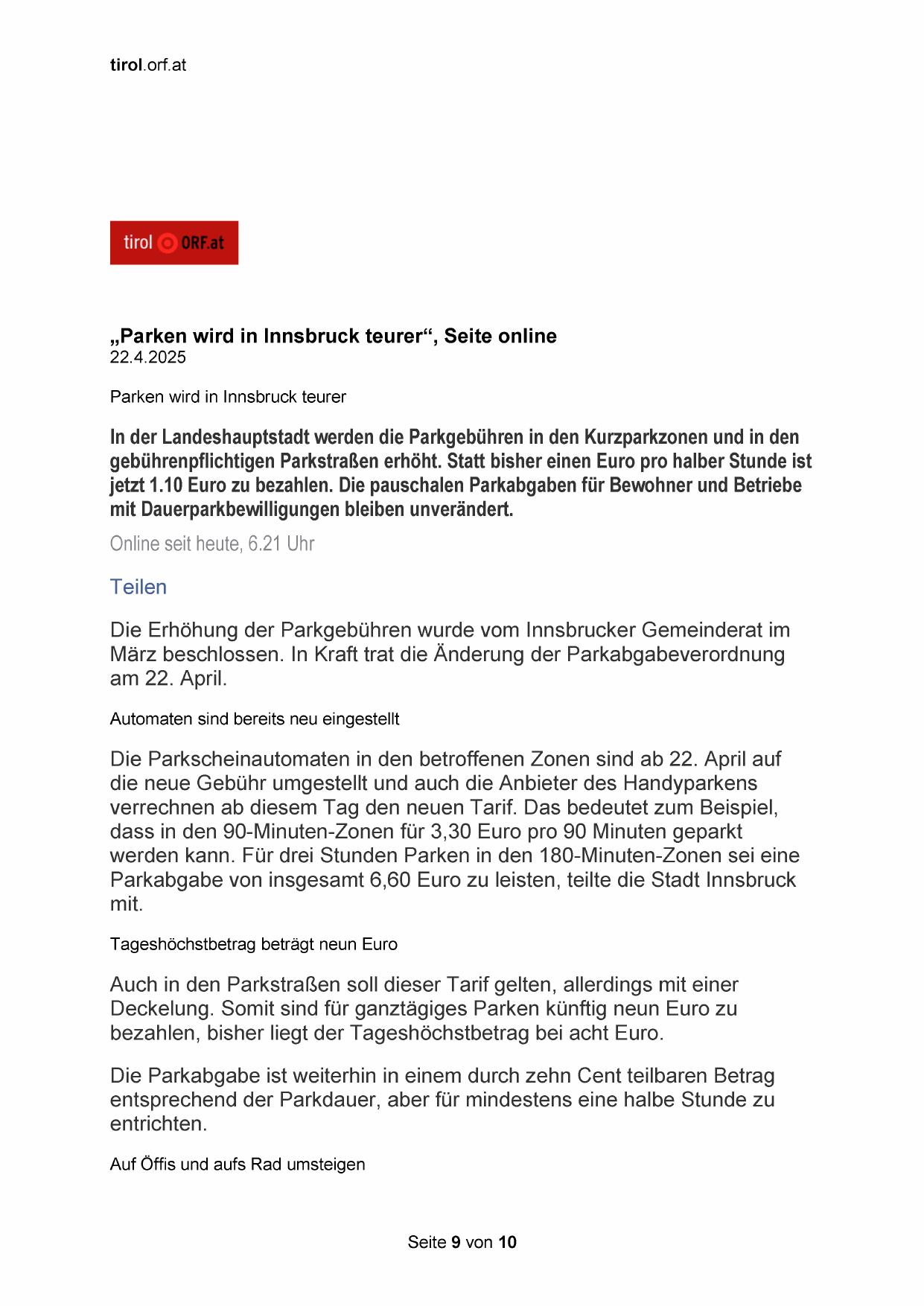 Parkabgabe von insgesamt 6,60 Euro zu leisten, teilte die Stadt Innsbruck
